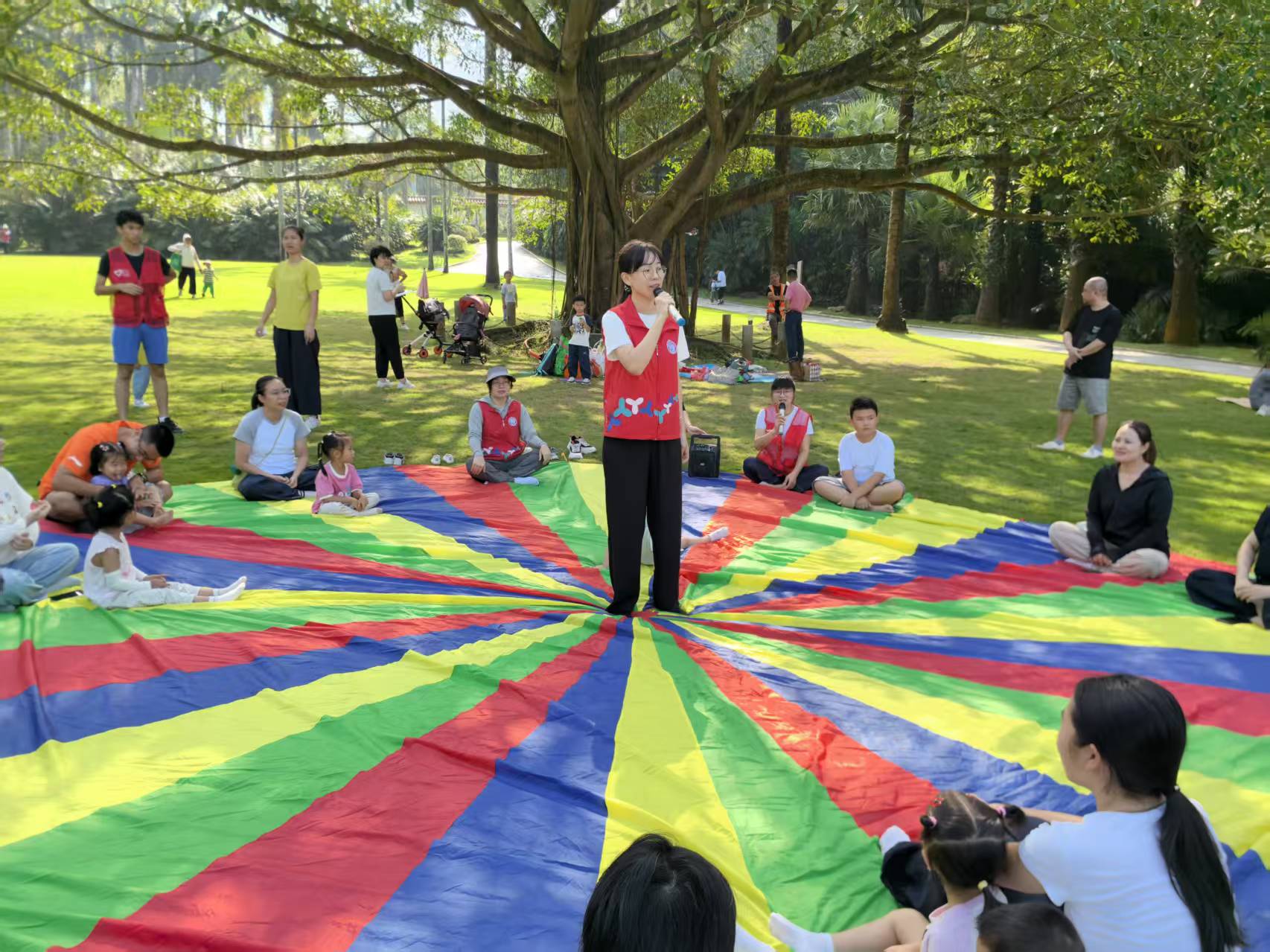 罗湖家园网讯:为了增进亲子间的情感交流,助力幼儿健康快乐成长,并积极响应第十五届全运会推动全民健身的号召,10月19日上午,驻点鹏兴社区的东西方社工联合麦格尔国际托育中心与仙湖植物园,共同举办了“探索自然,携手成长”亲子趣味运动会,吸引了20余组亲子家庭热情参与。