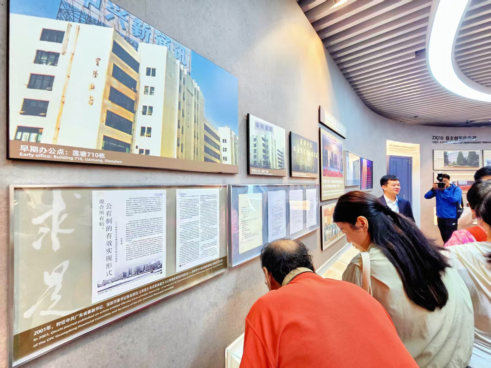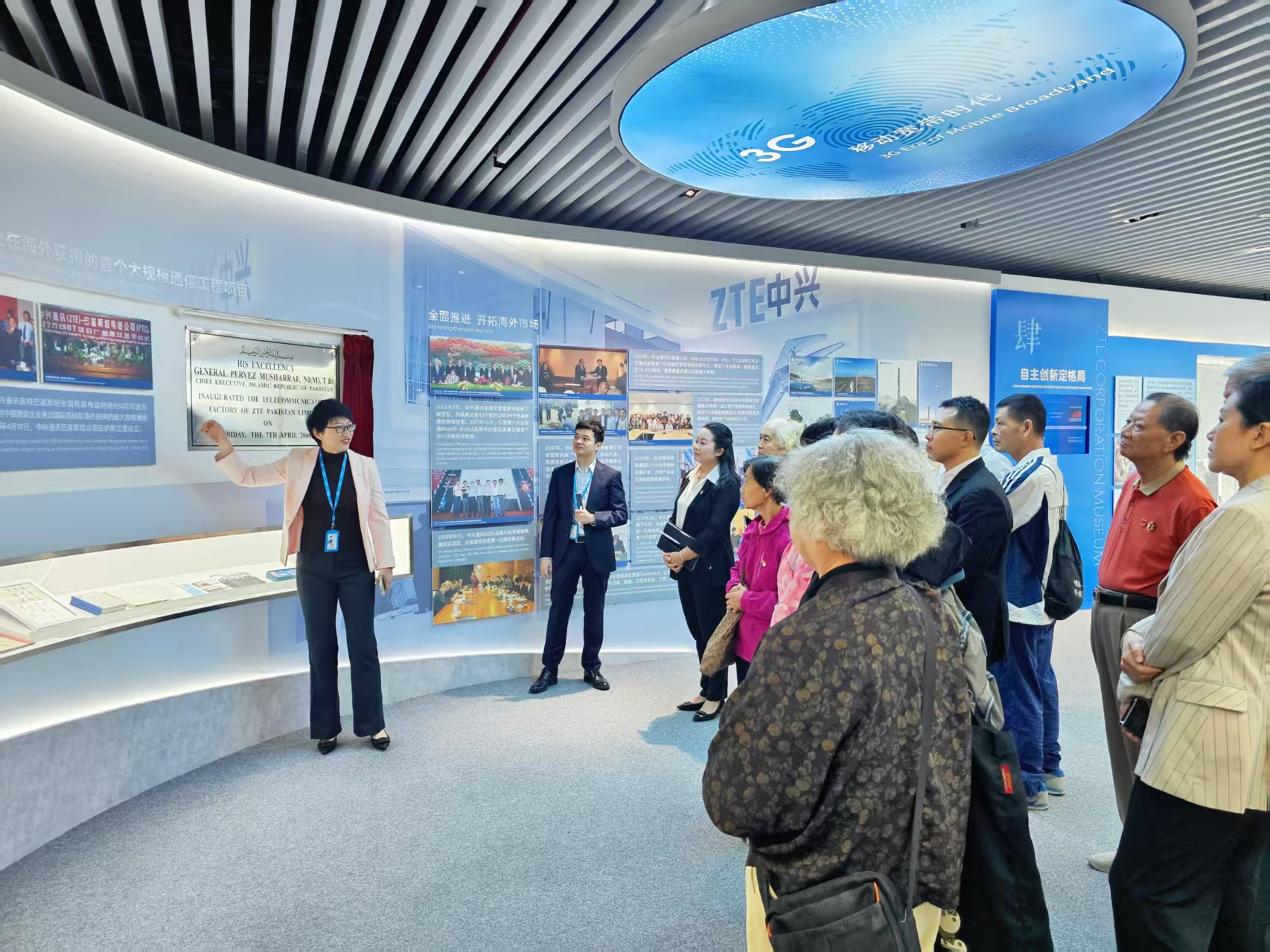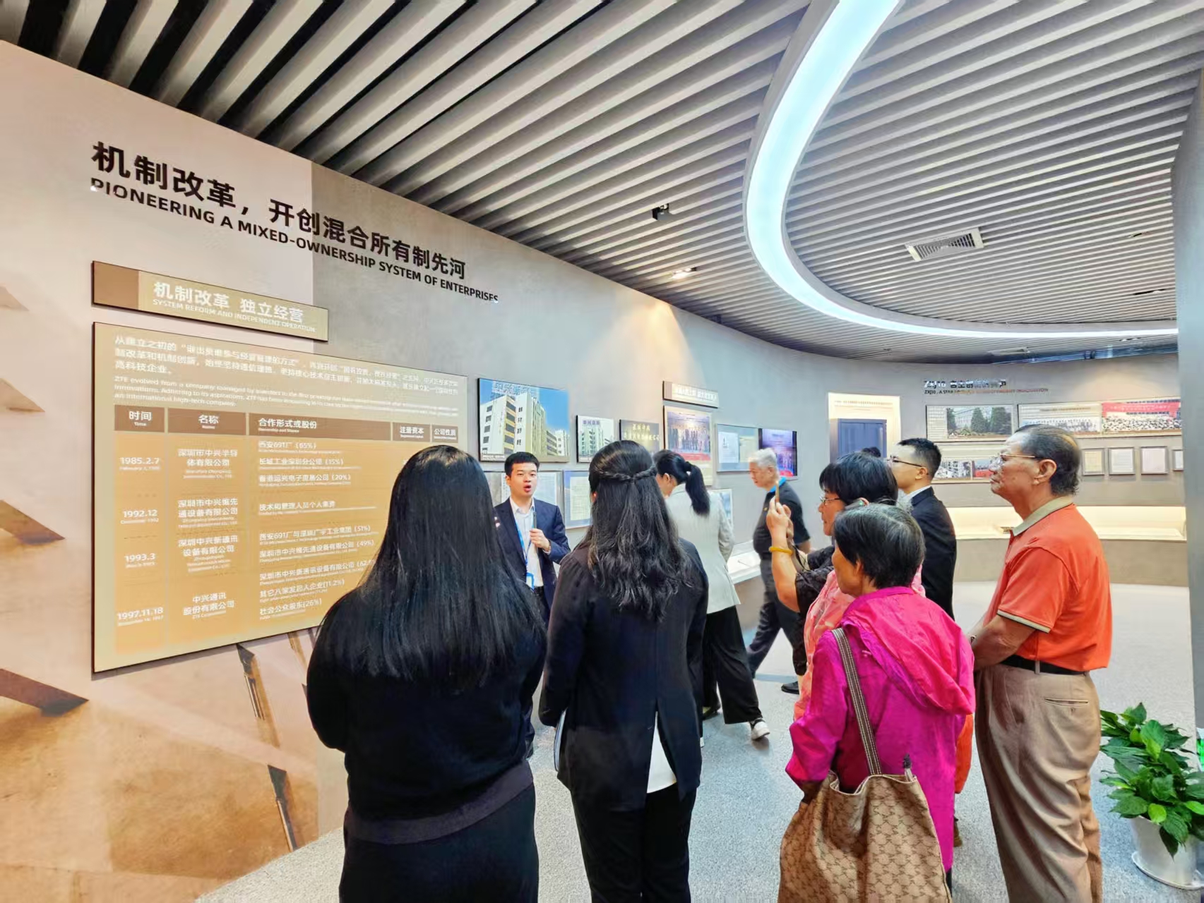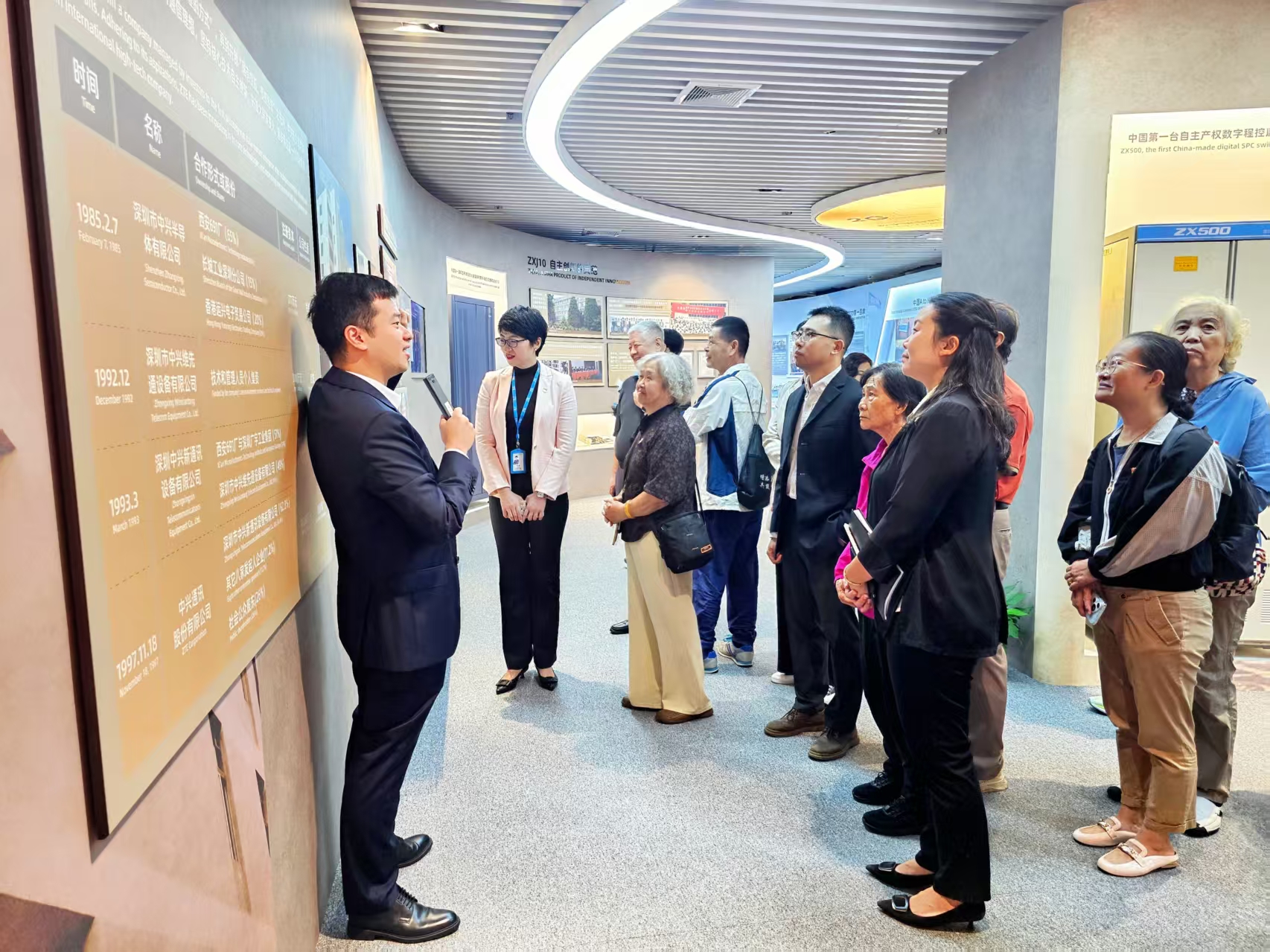 党员代表抵达后,中兴通讯工作人员对大家的到来表示热烈欢迎。在企业博物馆,通过丰富的历史照片和早期通信设备展品,大家系统了解了中兴从初创企业发展为全球通信科技标杆的奋斗历程。讲解员指着一张老旧的工业区照片介绍,莲塘是中兴真正的“起飞之地”。1993年4月,完成“国有控股、授权经营”股权改组的中兴新通讯设备有限公司在此落户罗湖莲塘鹏基工业区710栋。随着次年总部迁入,这里成为中兴凝聚团队、实现技术突破的关键舞台。在殷一民带领下,三十余人的团队扎根于小梧桐山下的这栋建筑,仅用一个月便成功研制出ZXJ2000A数字用户程控交换机,为企业站稳脚跟奠定基础。更在1995年,中兴在此成功研发万门数字局用交换机ZXJ10——这款被业内高度认可的机型,成为公司发展史上的重要里程碑。与此同时,中兴在莲塘明确提出“三个转变”战略,推动产品结构多元化和市场国际化布局,为1997年深交所上市奠定坚实基础。党员同志们深切感受到从ZXJ2000A到ZXJ10的技术跨越背后,所凝聚的艰辛付出与自主创新精神,不禁感慨:“原来我们日常使用的通信技术,蕴含着如此多的拼搏与汗水!”随后,大家移步核心展厅,观摩了5G技术在实际生活与工业生产中的广泛应用,体验智能终端设备带来的高效与便捷。讲解员细致解说,党员们踊跃提问,现场互动氛围浓厚。
