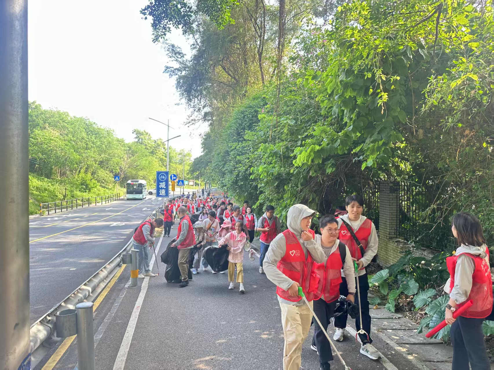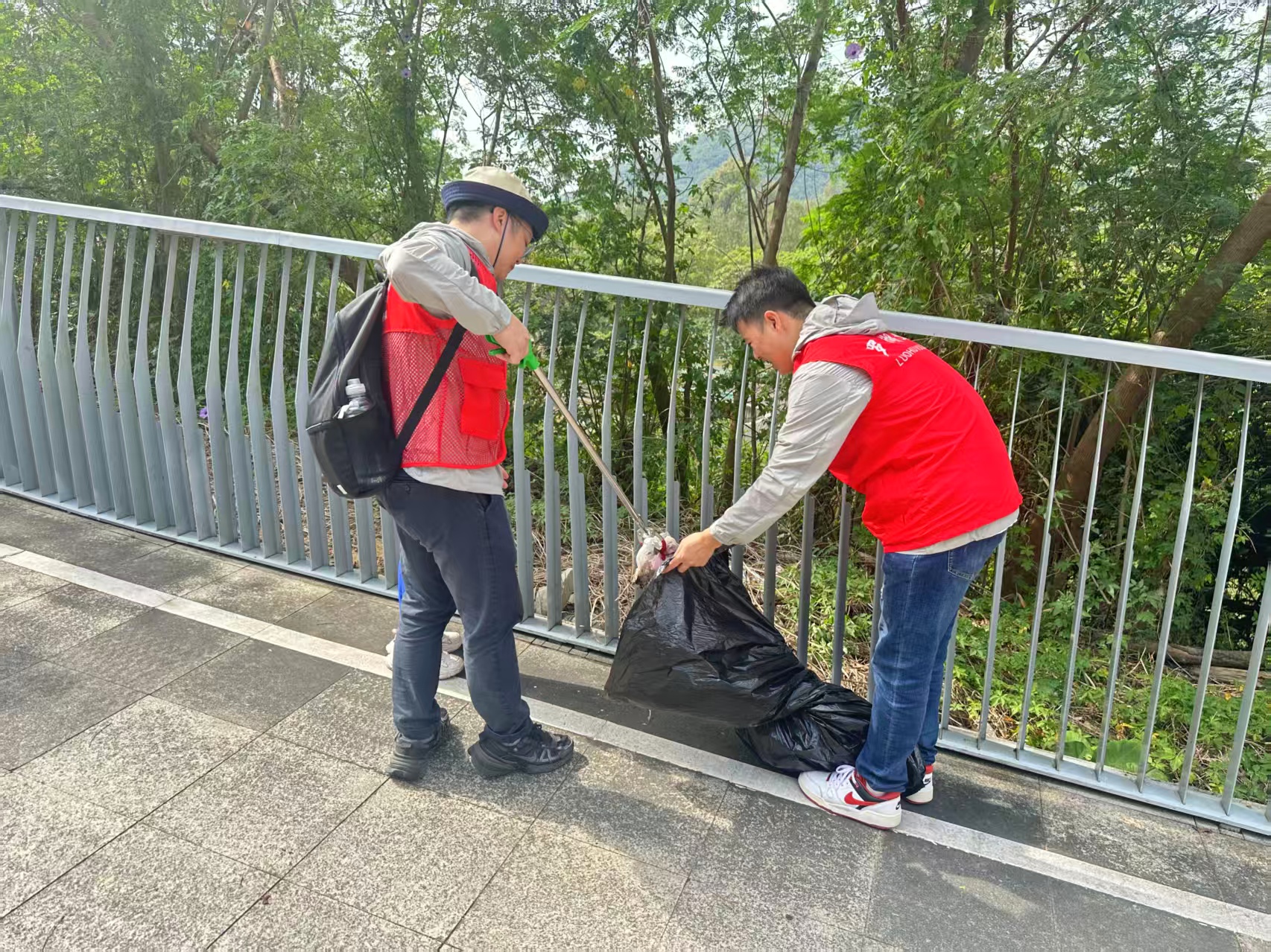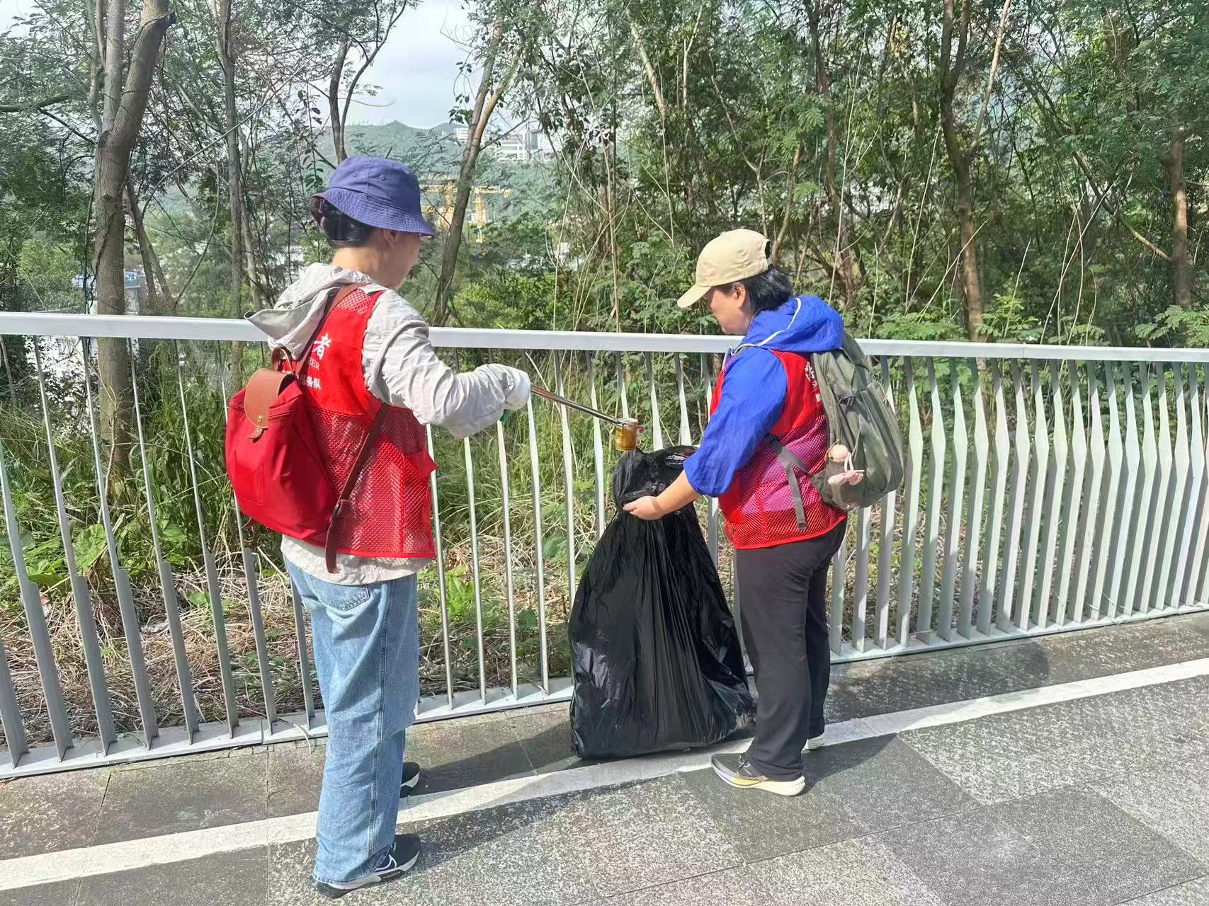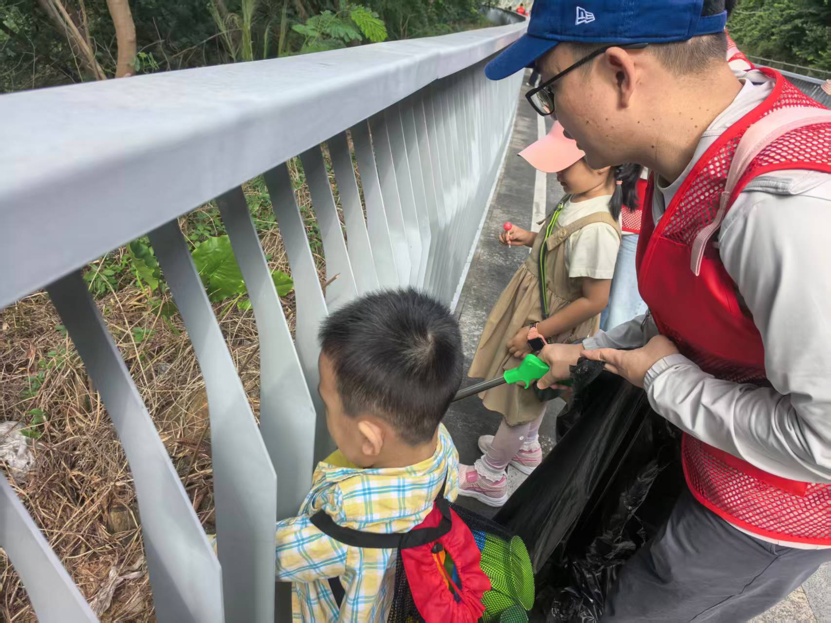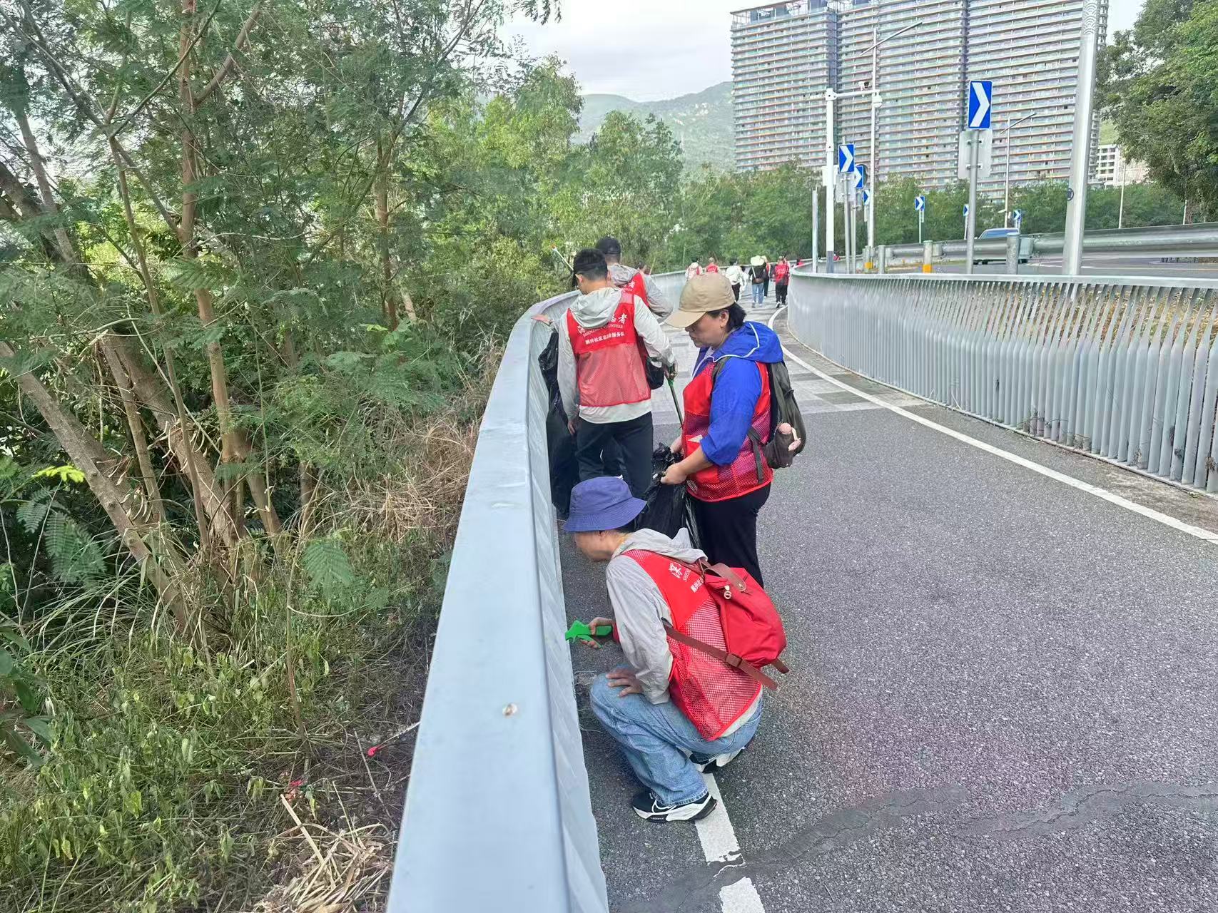 活动当日,东西方社工带领中银香港深圳信科中心 60 余名员工及家属组成志愿队,大家身着统一服装、携带清洁工具,前往位于玫瑰海岸的中银香港深圳信科中心的研修中心至望海角图书馆段海滨栈道,开展海岸守护行动。志愿者沿栈道徒步巡查,细致清理卡在步道缝隙里的塑料袋、栈道边缘堆积的饮料瓶、草丛中散落的碎纸屑等垃圾;活动中,跟着父母来参加活动的小妮特别积极,她用稚嫩却响亮的声音对着过往市民喊道:“请大家保护环境,不要随地扔垃圾哦!” 不仅如此,她还会轻轻拉住市民的衣角,认真讲解海洋污染会给海洋生物带来哪些危害,以及如何正确进行垃圾分类。看到这一幕,一位参与的员工也感慨道:“带孩子一起参与特别有意义,不仅让他看到清理垃圾的辛苦,更懂得了要从自己做起,不随意丢弃垃圾,为保护环境出份力。”活动过程中,志愿者们身着的红色志愿服,与蓝天、碧海相互映衬,不仅美化了海滨栈道环境,也构成了一道充满温情的风景线,以实际行动号召更多人加入海岸线守护队伍,共护碧海蓝天。