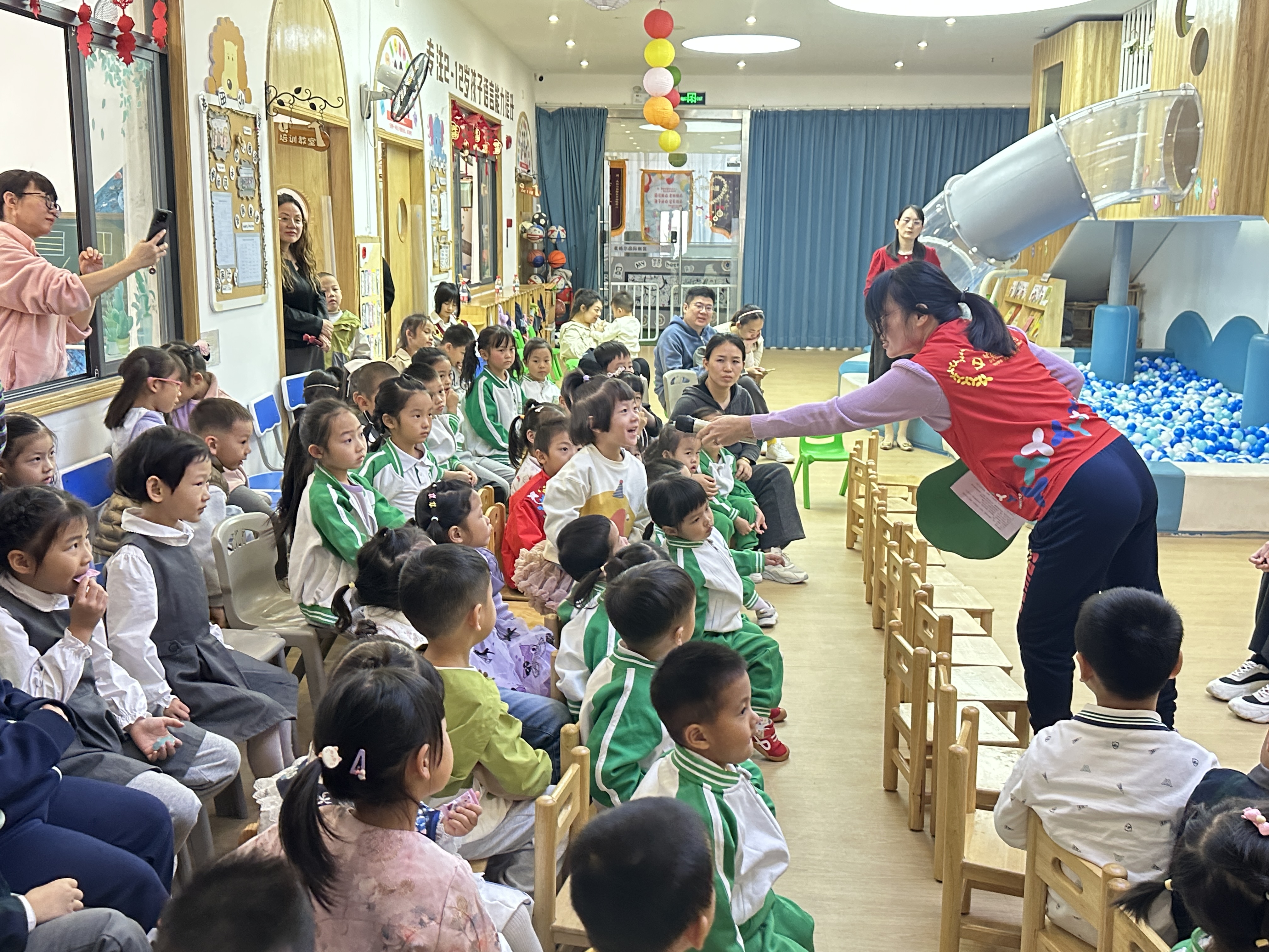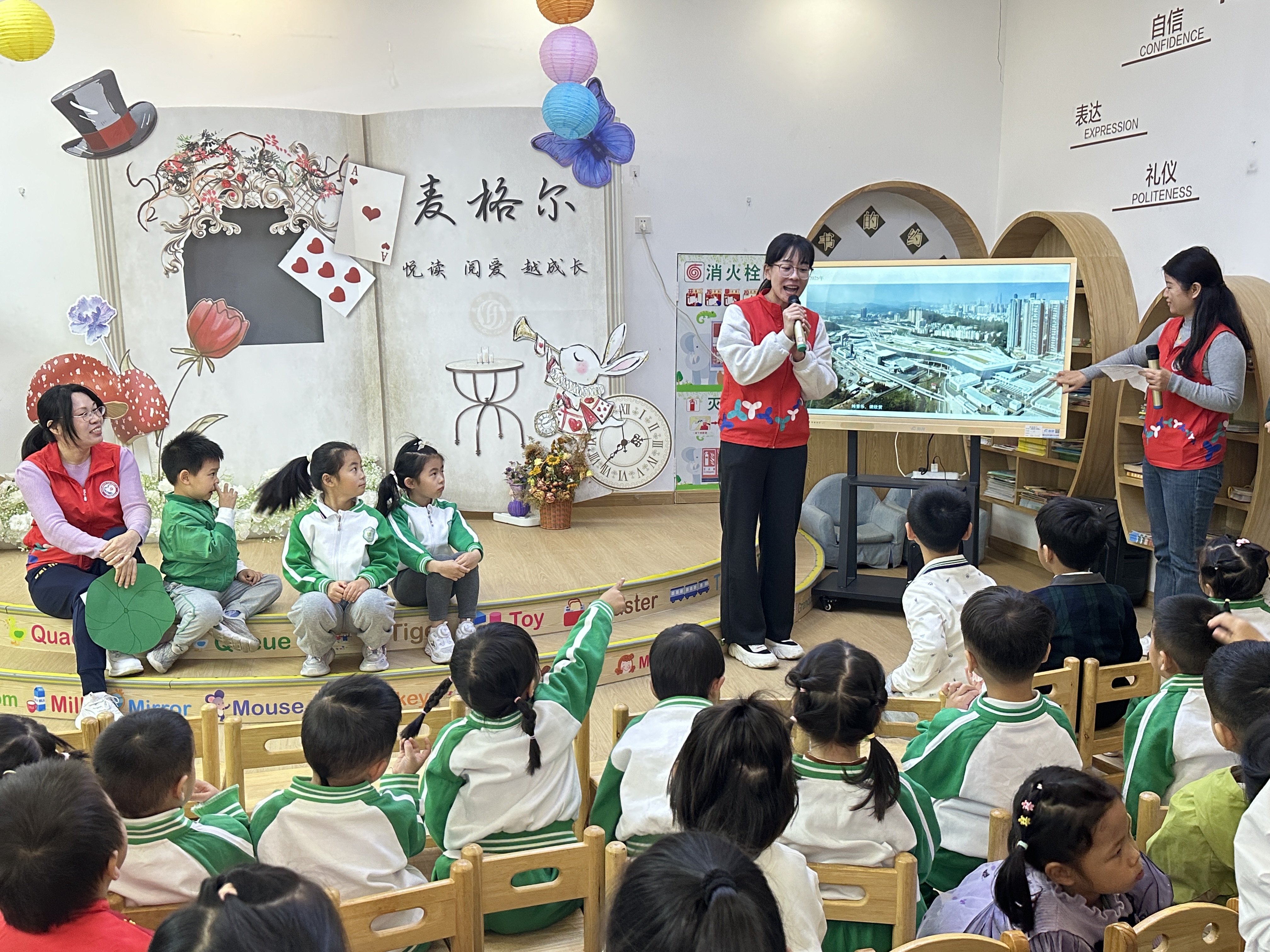 罗湖家园网讯:11月,驻点鹏兴社区的东西方社工携手昊德宸中心幼儿园、罗湖外语学校附属幼儿园、鹏兴幼儿园、麦格尔托育中心辖区四所幼儿园,共同启动了读书月系列活动。本届读书月通过邀请幼儿园小朋友与家长共读绘本、分享故事等形式,积极倡导“阅读相伴成长”的理念,鼓励亲子共享阅读时光,播撒热爱阅读的种子。在读书月临近尾声之际,鹏兴社区党委精心编排的情景剧《莲塘时光机》作为压轴节目,在各幼儿园的闭幕式上轮番上演,为本次活动画上圆满句号。