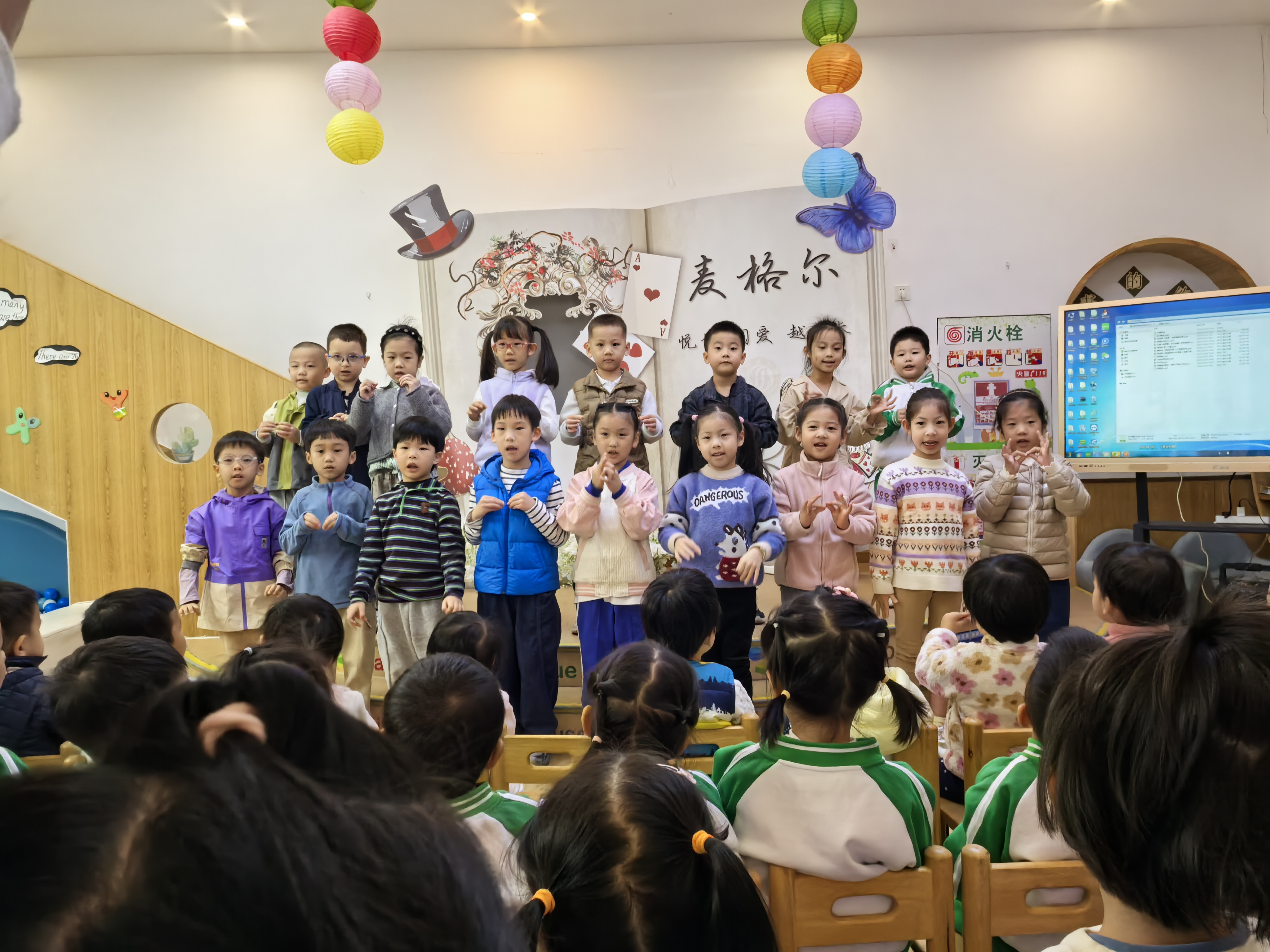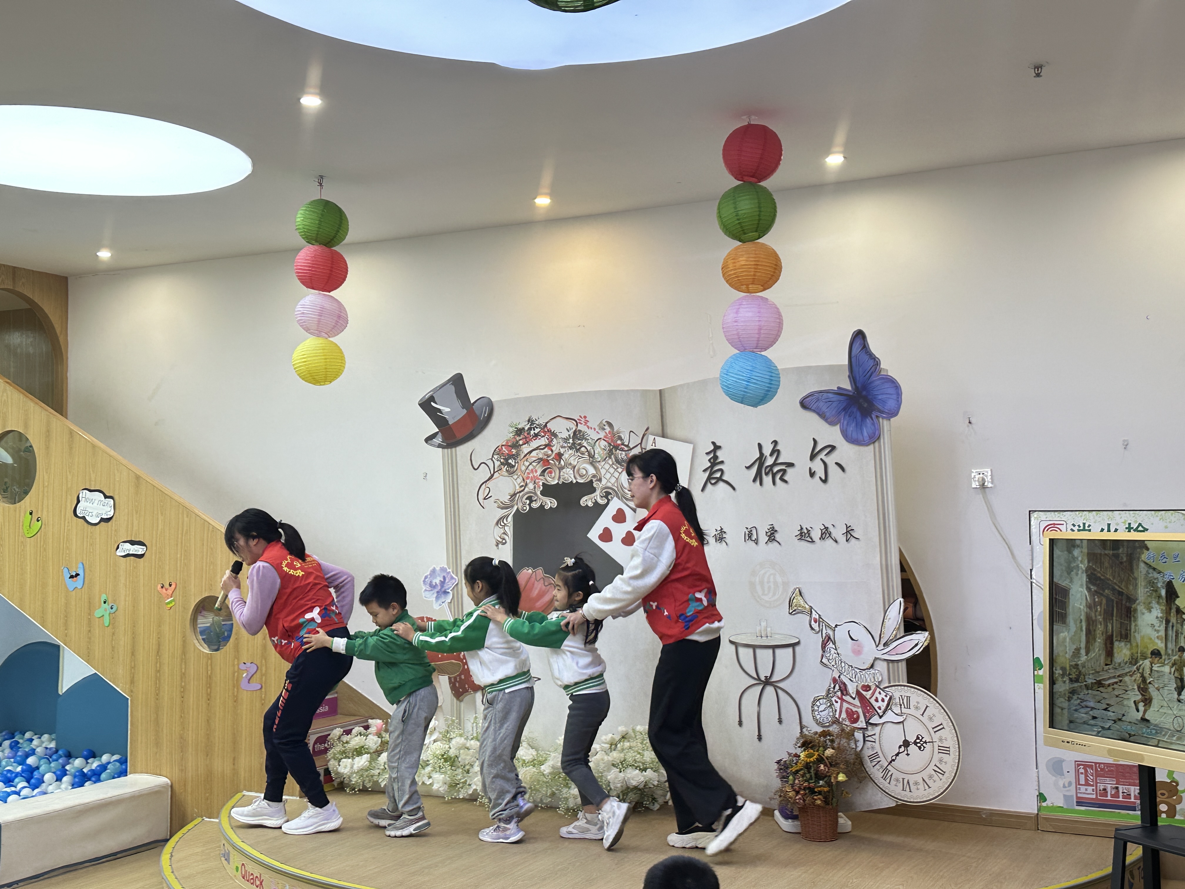 11月27日,麦格尔国际托育中心率先迎来读书月闭幕活动。在孩子们翘首以盼中,鹏兴社区的社工化身“时光导游”,以生动活泼的戏剧形式,带领小朋友们开启了一场穿梭莲塘过去与现在的奇妙旅程。情景剧《莲塘时光机》如同一幅徐徐展开的画卷,在鲜明的今昔对比中,将莲塘的变迁娓娓道来:从昔日四个村落淳朴的田园生活,到今天现代化社区的蓬勃气象;从往昔简朴的村塾学堂,到如今设施完备的美丽校园。剧中还生动展现了仙湖植物园从自然野趣到闻名遐迩的景观升级,莲塘口岸与地铁站的建成通车为生活带来的便捷,以及仙桐体育公园如何成为居民健身休闲的好去处。