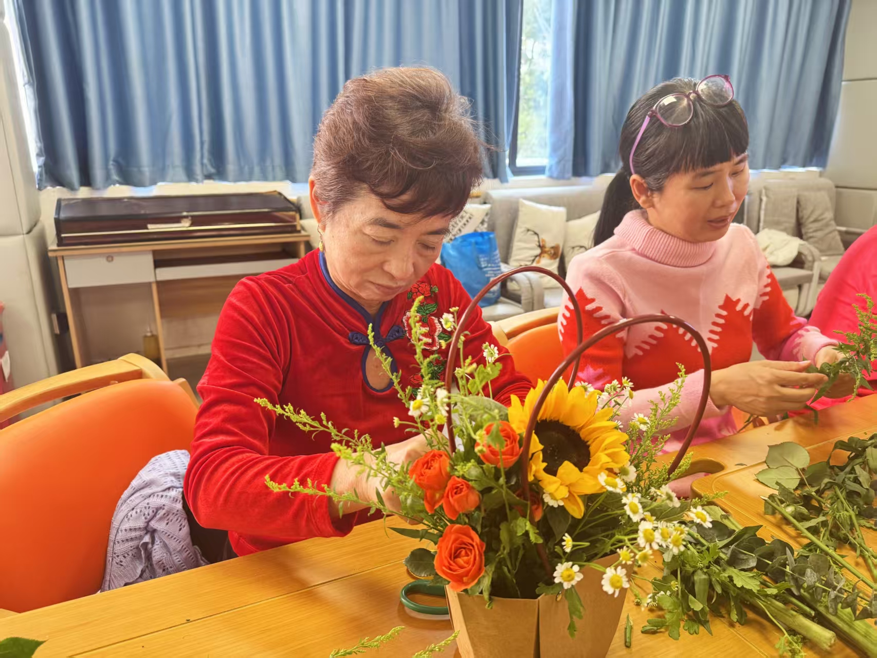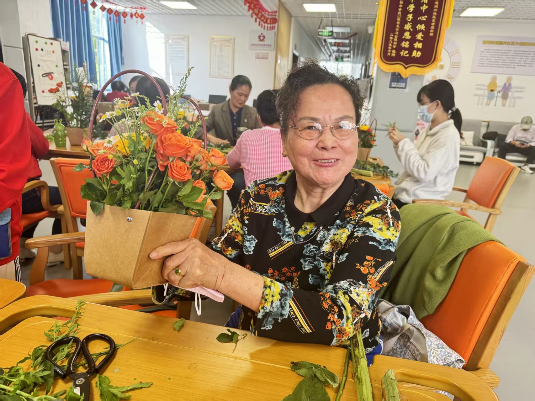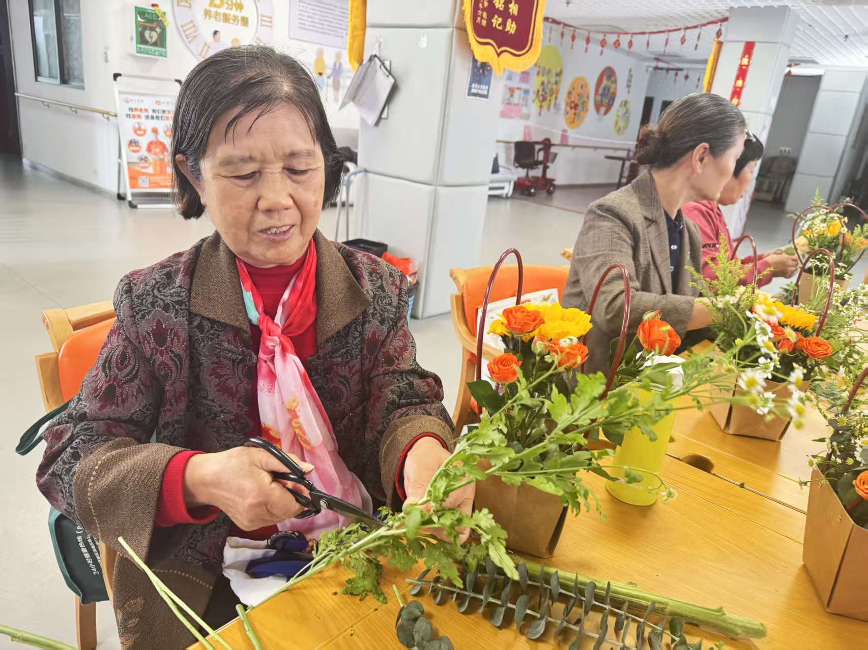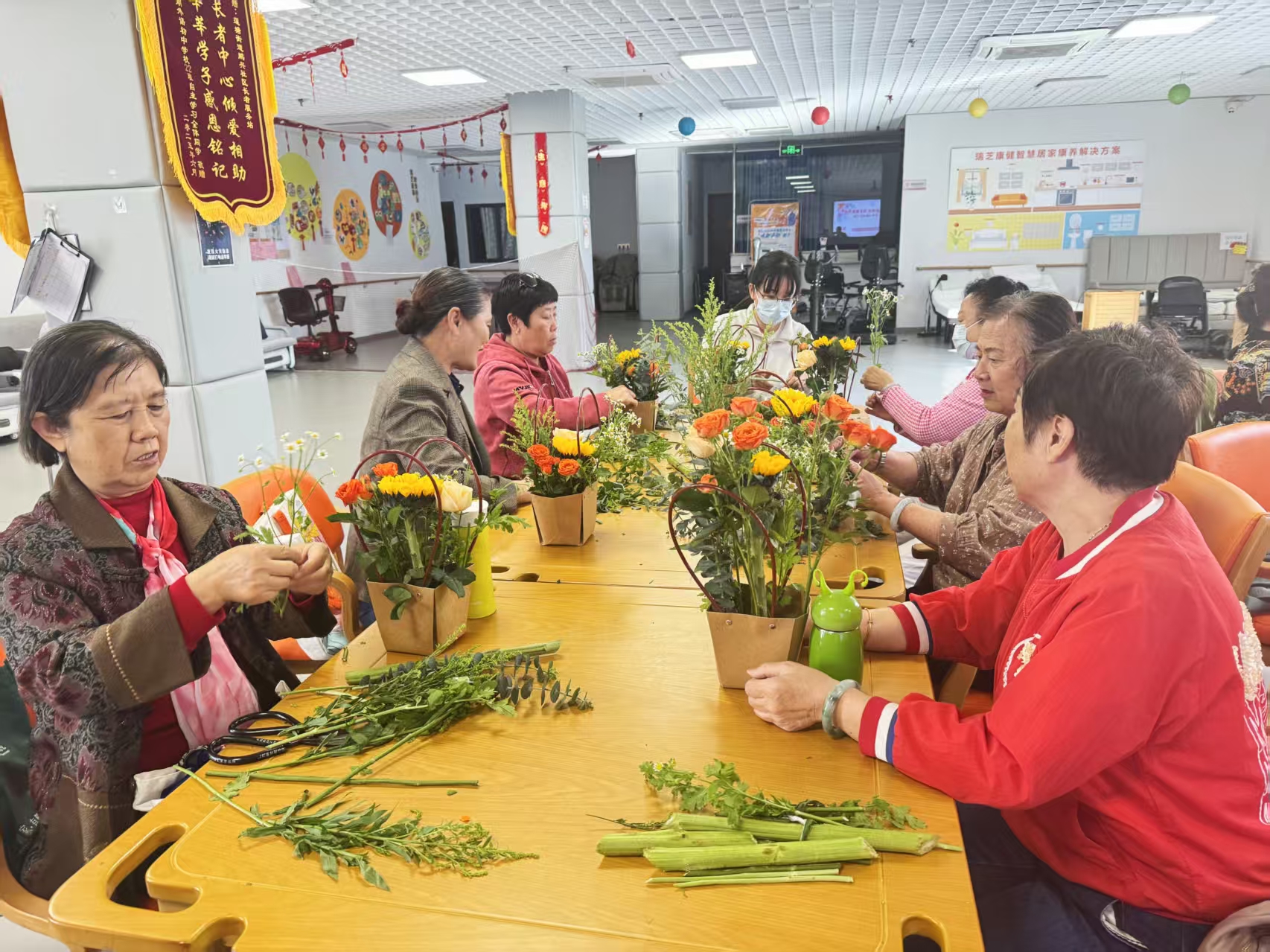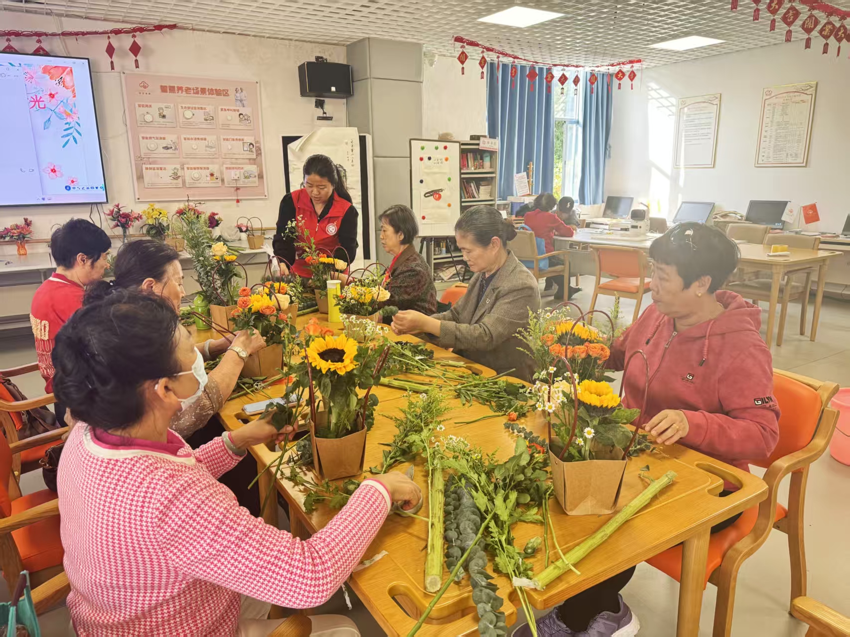 花香暖夕阳,银龄手作聚温情——鹏兴社区举办长者插花活动
