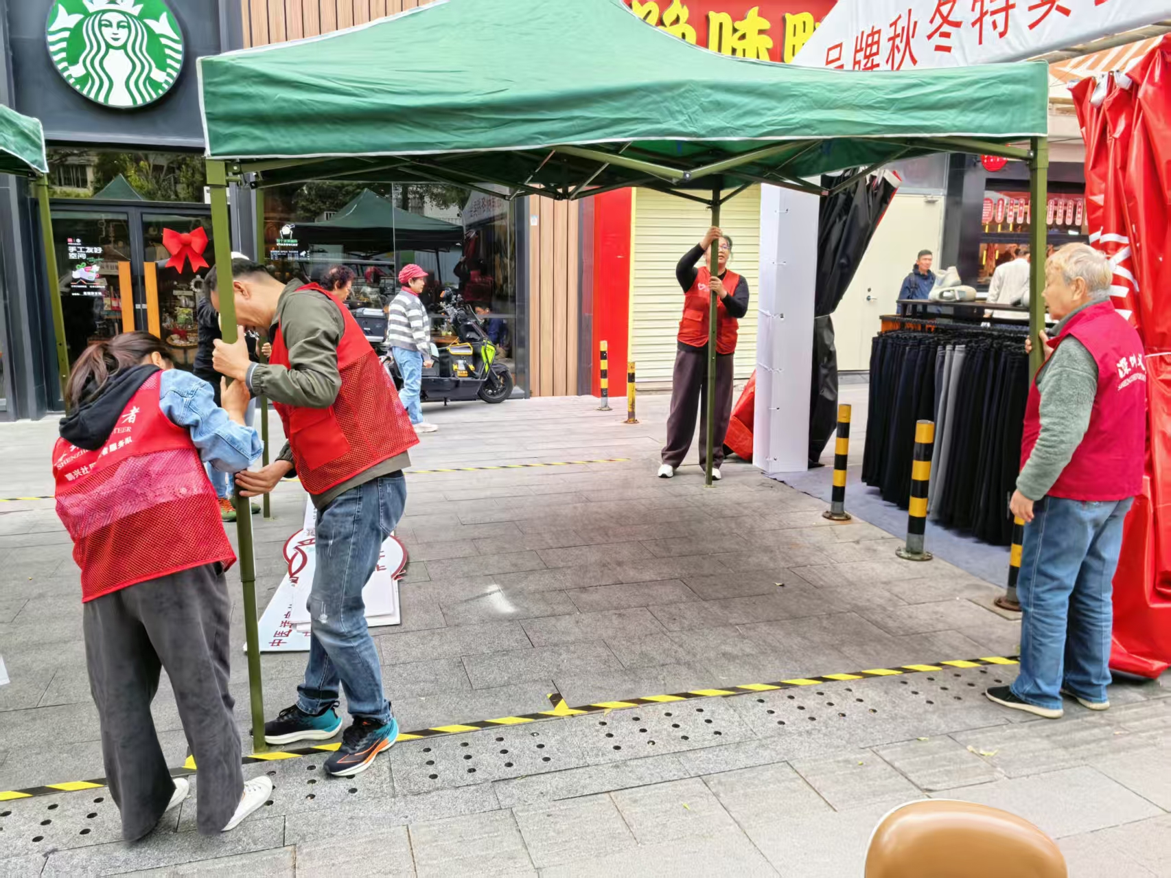午后1点,当社区逐渐沉浸在周末的悠闲氛围中时,志愿者们已准时集结,开始了紧张而有序的筹备工作。他们搬运帐篷、摆放桌椅、搭建舞台、划分义诊区与摊位区,并细心调试音响设备,为午后即将到来的热闹悉心准备。每一个细节都凝聚着用心,只为给居民营造一个便捷、安全又充满欢乐的活动空间。