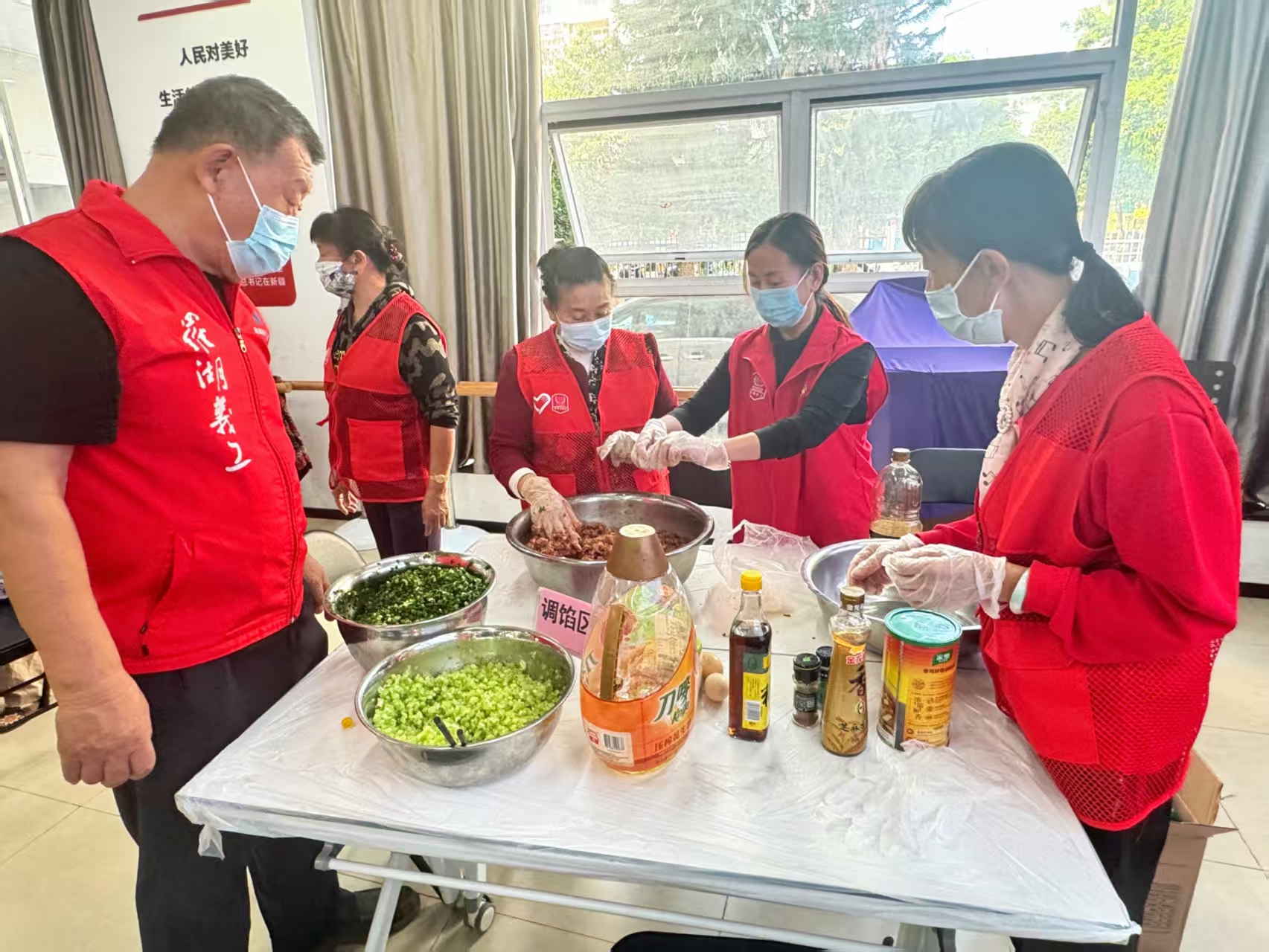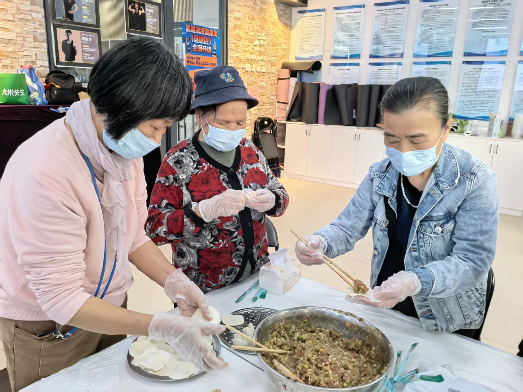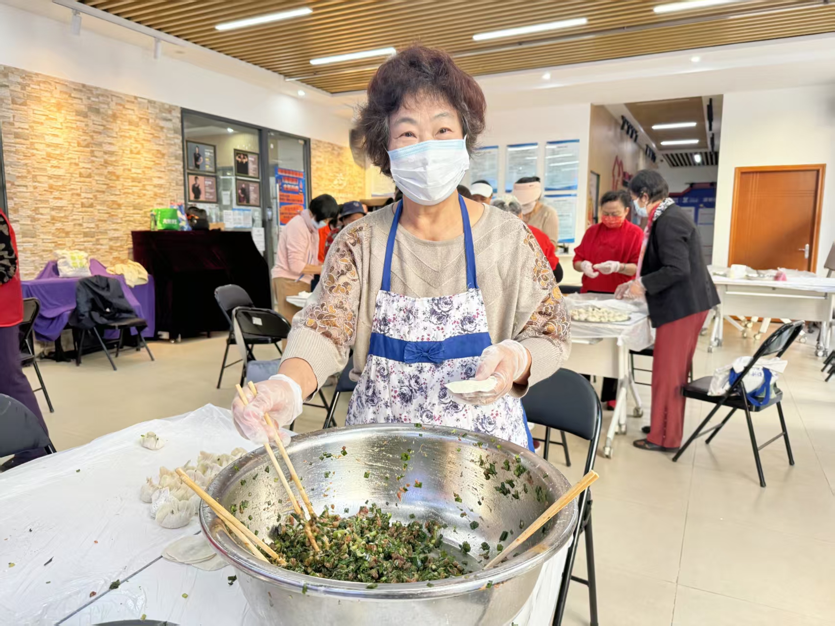 活动现场划分为调馅区、擀皮区、包饺区和品尝区四个区域,在资深志愿者的引导下,长者们有序参与。从前期场地布置到食材、工具准备,社区工作人员与志愿者们用心体现在每一个细节,为长者们打造舒适温馨的活动环境,以切实行动诠释着对老年群体的尊重与关爱。