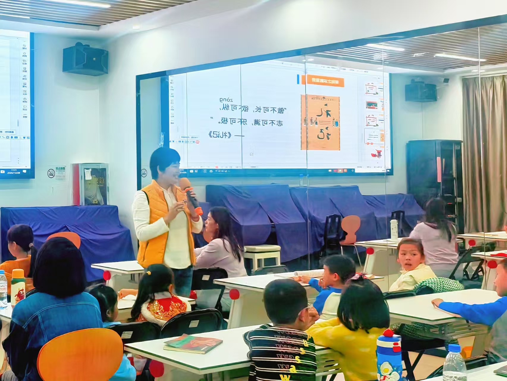 活动中,老师带领亲子家庭领略经典礼节故事,随着绘声绘色的讲解,其中的传统道理也变得亲切好懂。随后的诵读环节中,“傲不可长,欲不可纵,志不可满,乐不可极”的朗朗诵读声在室内回响,孩童稚嫩的声音与家长温和的语调交织在一起,让传统智慧悄然浸润心田。