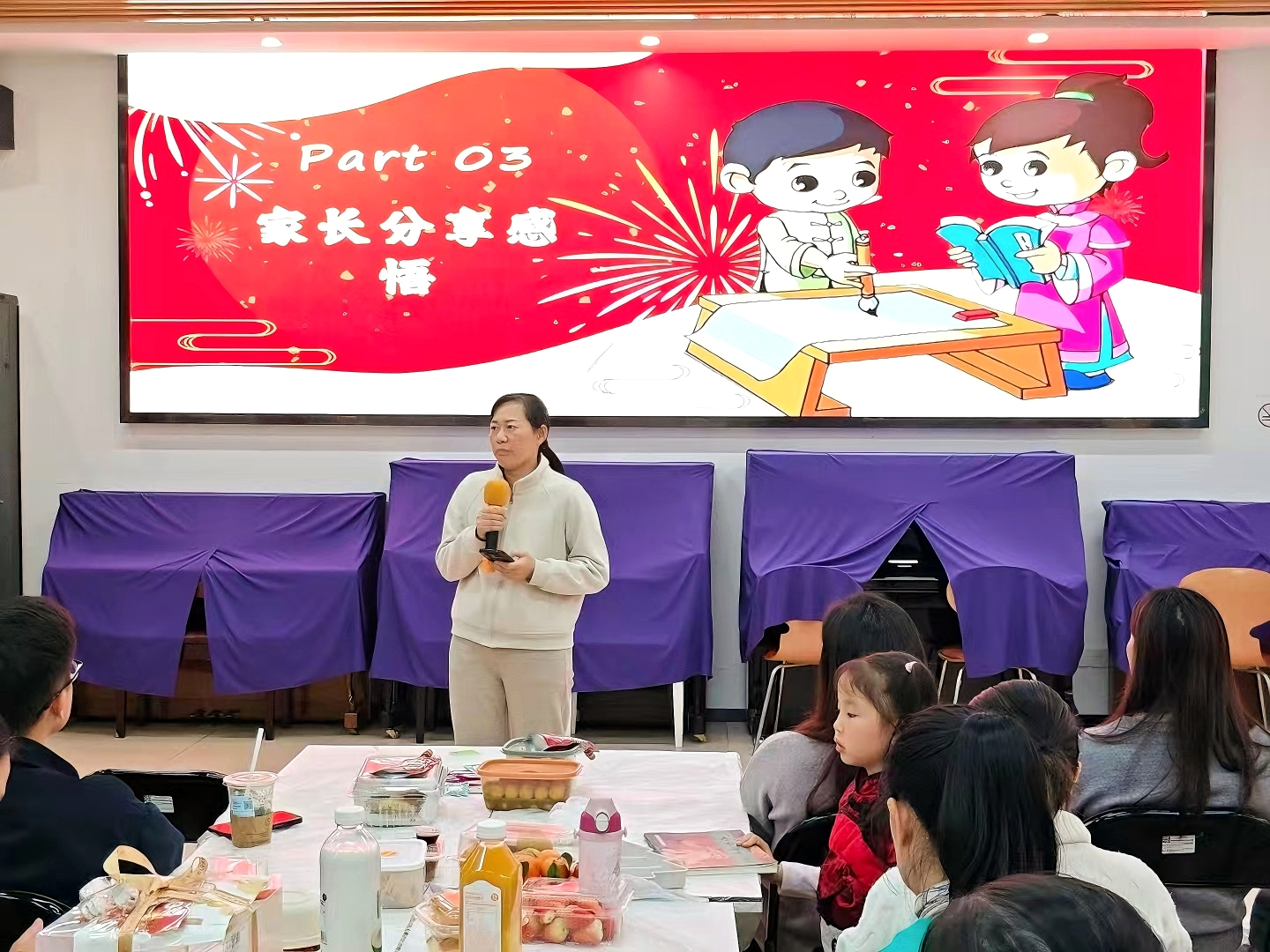 1月25日下午,“书香贺岁 经典传家”亲子国学年味体验活动温馨开启。活动以国学理念为引导,通过组织亲子家庭协作制作特色美食,让孩子们在劳动中理解并践行分享的美德。活动特邀宋老师带来趣味思维课堂,通过互动游戏激发孩子的思考兴趣,培养其逻辑思维能力。家长们也踊跃分享各地年俗,开启一场“云端年味之旅”。在美食分享环节,孩子们主动将美食递给长辈、老师,亦与小伙伴分享分享自己亲手制作的美食,用实际行动践行国学中“孝敬父母、尊敬师长”的道理,让亲子陪伴更具文化温度。