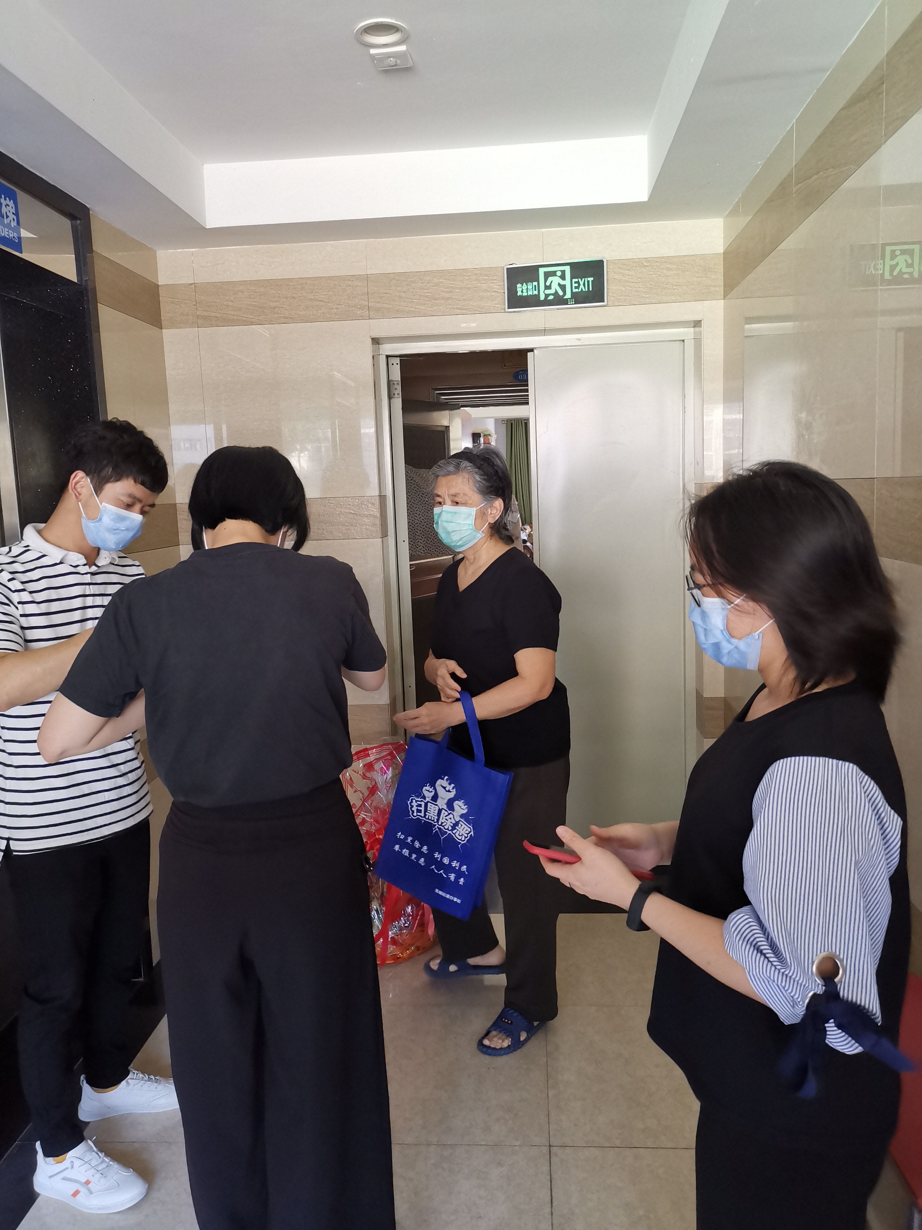 2020年4月29日下午,莲塘街道退伍军人事务中心李明杰在仙湖社区云景梧桐党支书记林晓婷、民生干事熊玲、网格员张涛的陪同下,来到社区运发御景兰庭看望慰问患病伤残退伍军人林晓南,给他送上果篮、口罩等慰问品,把党和政府的问暖送到退伍军人心上。