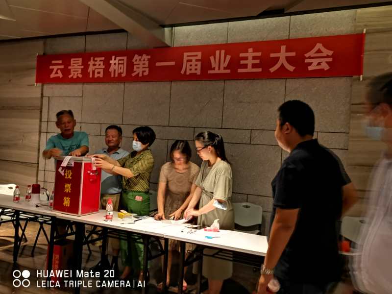 2020年8月29日晚,仙湖社区云景梧桐召开第一届业委会大会,仙湖社区党委书记康晓磊、网格员刘兴权到会指导监督。