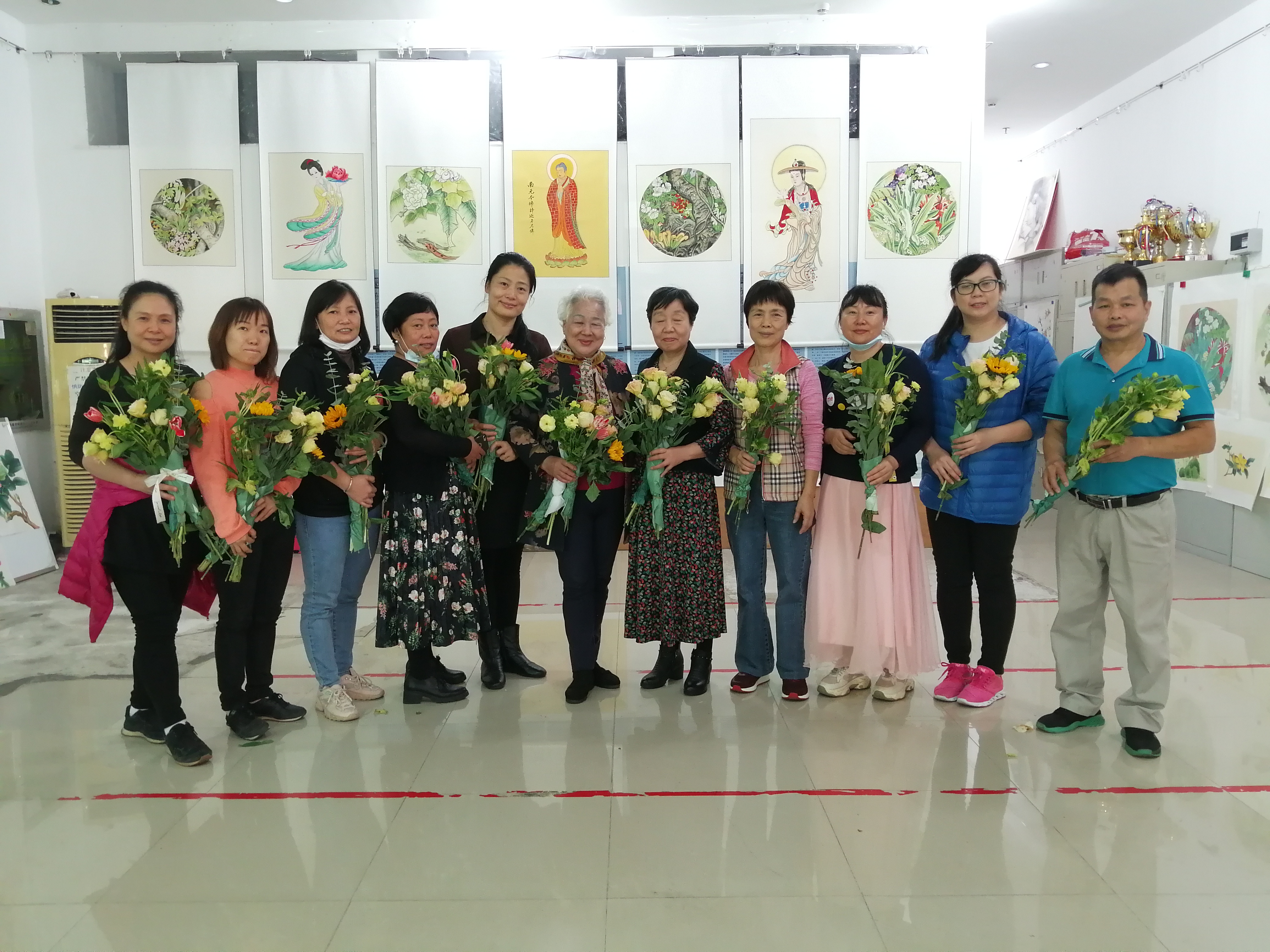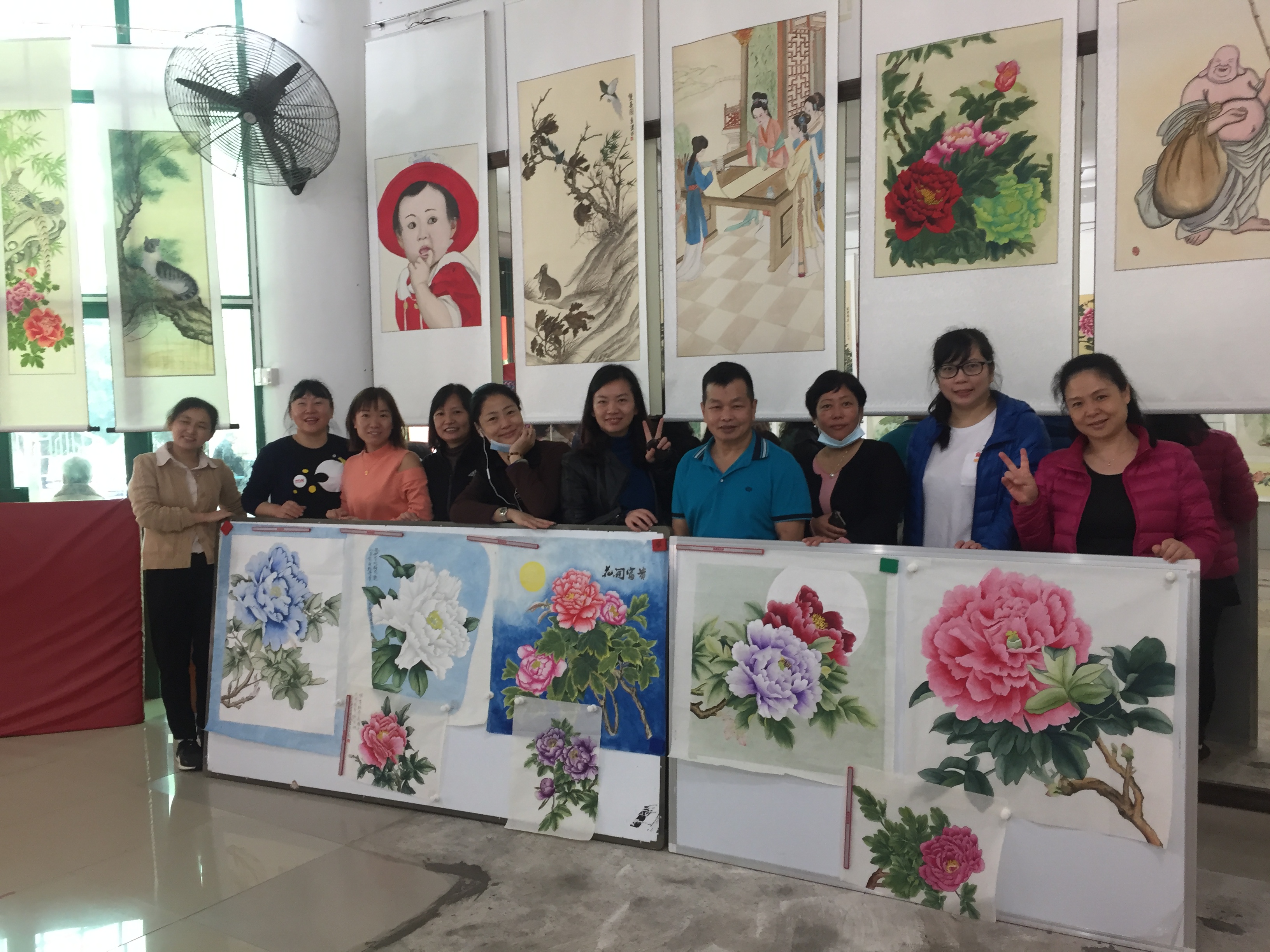 罗湖家园网讯:2020年12月29日上午,仙湖社区党群服务中心主任刘红艳、社工黄淑丽带队与社区国画班初级一期的7位学员专程到访深圳市梅林书画院“梅林一村画展”进行作品观摩与交流。