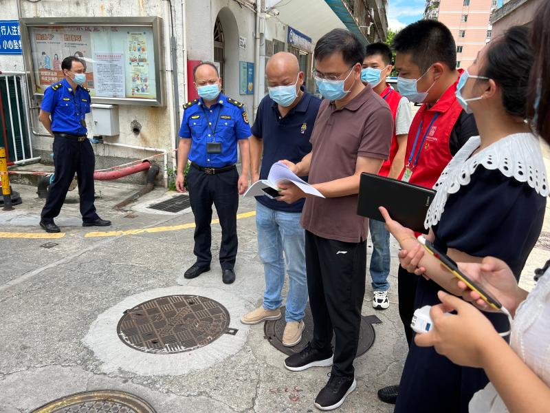 2022年8月16日上午,莲塘街道党工委书记叶爱权率领街道党政办、驻点团队、执法队等检查仙湖社区创建文明城市、疫情防控、消防安全等工作。