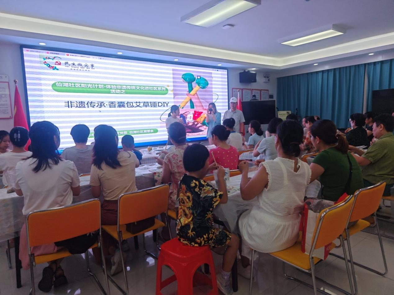 8月3日上午,随着晨光初照,仙湖社区党群服务中心迎来了一场别开生面的民生微实事活动——手工制作艾草锤与中药香囊包。社区内洋溢着浓厚的传统文化氛围,吸引了30多位居民的热情参与。