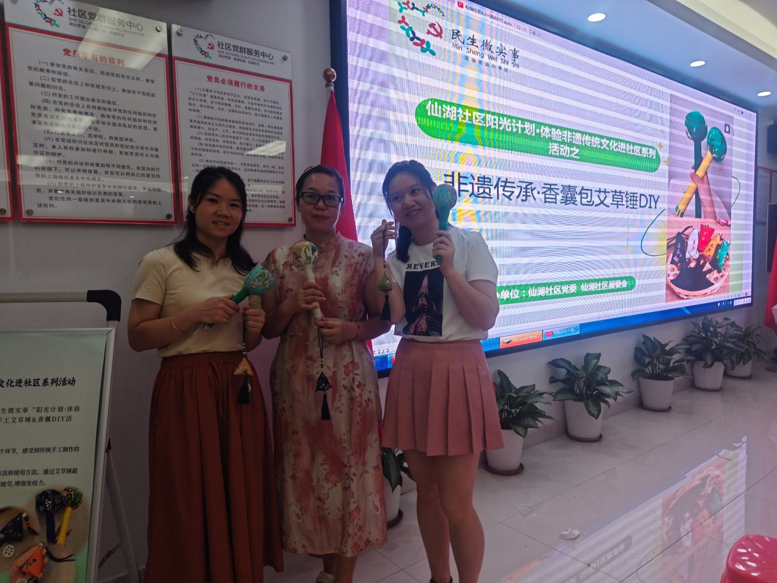 通过此次活动,居民们不仅亲手制作出了既实用又美观的艾草锤和中药香囊包,更深刻体会到了传统文化的魅力与健康生活的重要性。仙湖社区党委表示,未来将继续实行更多类似的民生微实事项目,让传统文化与现代生活相融合,为居民们带来更多健康与快乐。