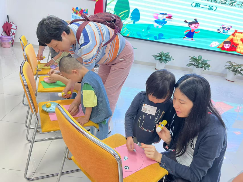 随后的创意手工环节,亲子共同完成“表情拼贴画”,4岁的希希认真地把弯弯的眉毛贴在画纸上,妈妈轻声引导:“生气的时候眉毛会这样竖起来对吗?”感统触觉训练环节同样精彩纷呈,袋子里装着毛绒玩具,孩子们好奇地伸手触摸,并努力描述着自己的感受,适当的触觉刺激不仅给孩子们带来了新奇的体验,更有助于他们调节情绪,提升感知能力。