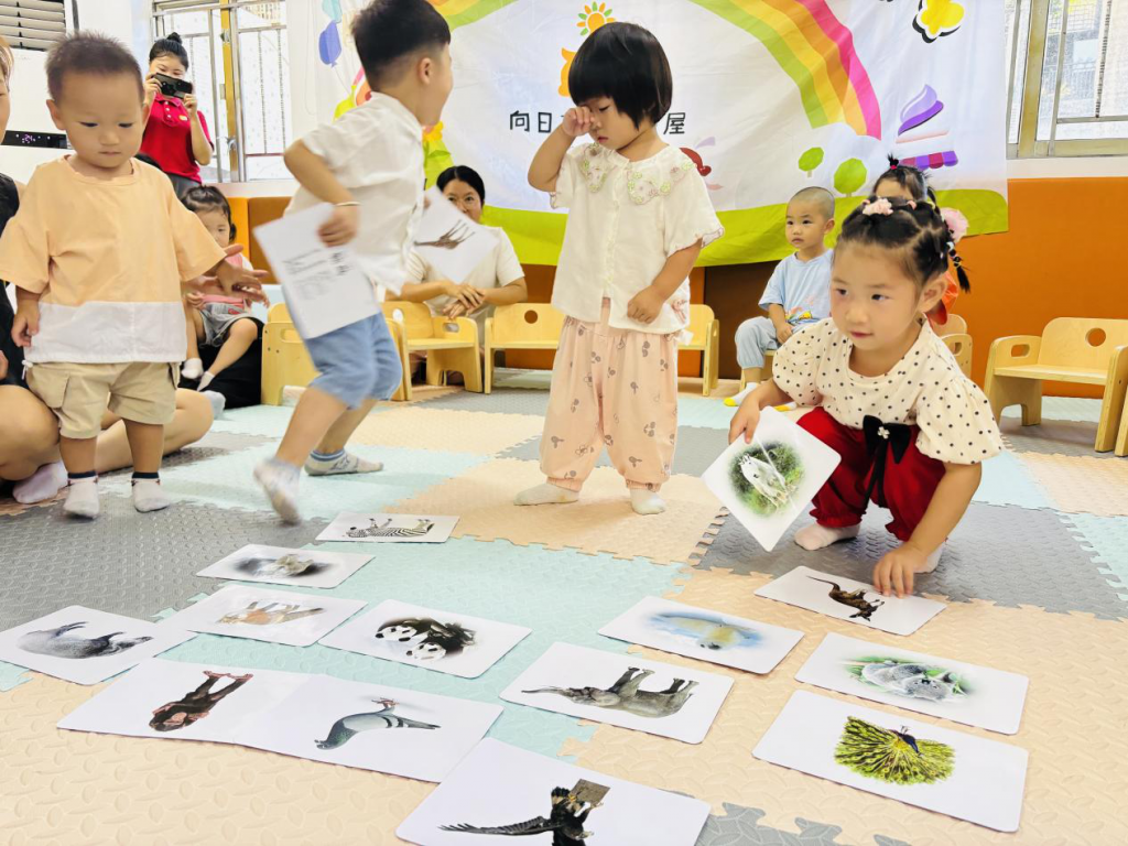 活动伊始,工作人员为孩子们分发了绘有动物和植物的卡片,引导孩子们认识小猫、小狗、向日葵等多种生物,并讲解他们的生活习性,为后续环节做好了知识铺垫。