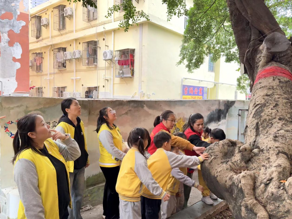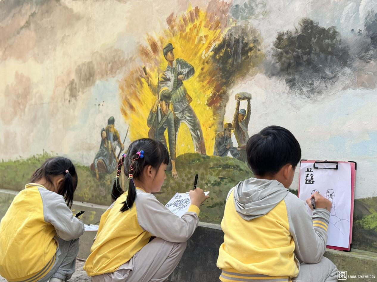 随后,孩子们来到这棵树龄超过110年的古榕树下。这棵古树枝繁叶茂,静静伫立,见证着时代的更迭,也承载着深厚的历史底蕴。孩子们绕着榕树缓缓行走,轻轻触摸粗糙的树皮,感受历史的厚重。随后,他们拿出纸笔,用绘画记录下所见所感:有的描绘战士英勇作战的场景,有的勾勒古树的雄姿,用笔画表达对革命先烈的敬意。1 ]. s& z3 `+ P% f