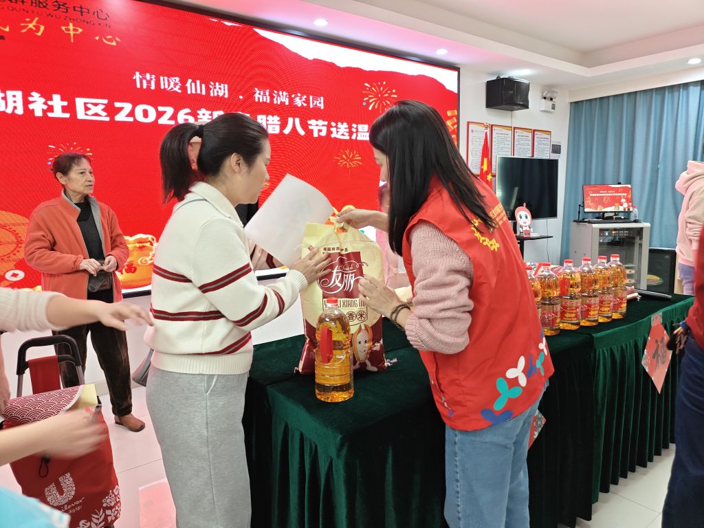 腊八节至,年意渐浓。2026年1月26日,仙湖社区党群服务中心暖意融融,欢声笑语不断。一场以“情暖仙湖,福满家园”为主题的送温暖活动在这里温情举行。社区联合辖区爱心企业、党员及居民志愿者,诚挚邀请辖区内困难家庭代表来到社区,为他们送上节日的问候与实实在在的生活物资,在交流与倾听中传递社会关爱,共迎温暖新春。