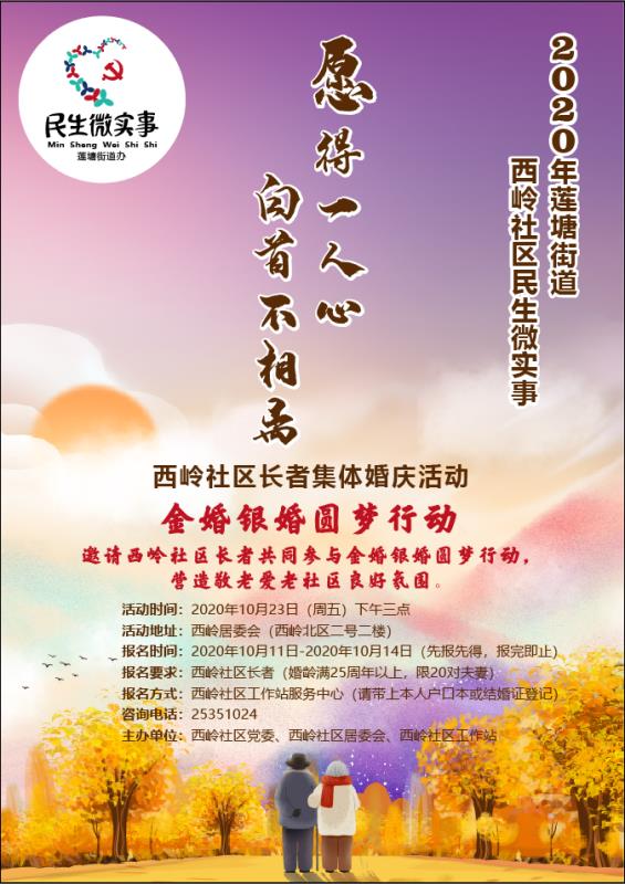 西岭社区开展民生微实事之“愿得一人心,白首不相离”西岭社区金婚银婚圆梦行动的通知