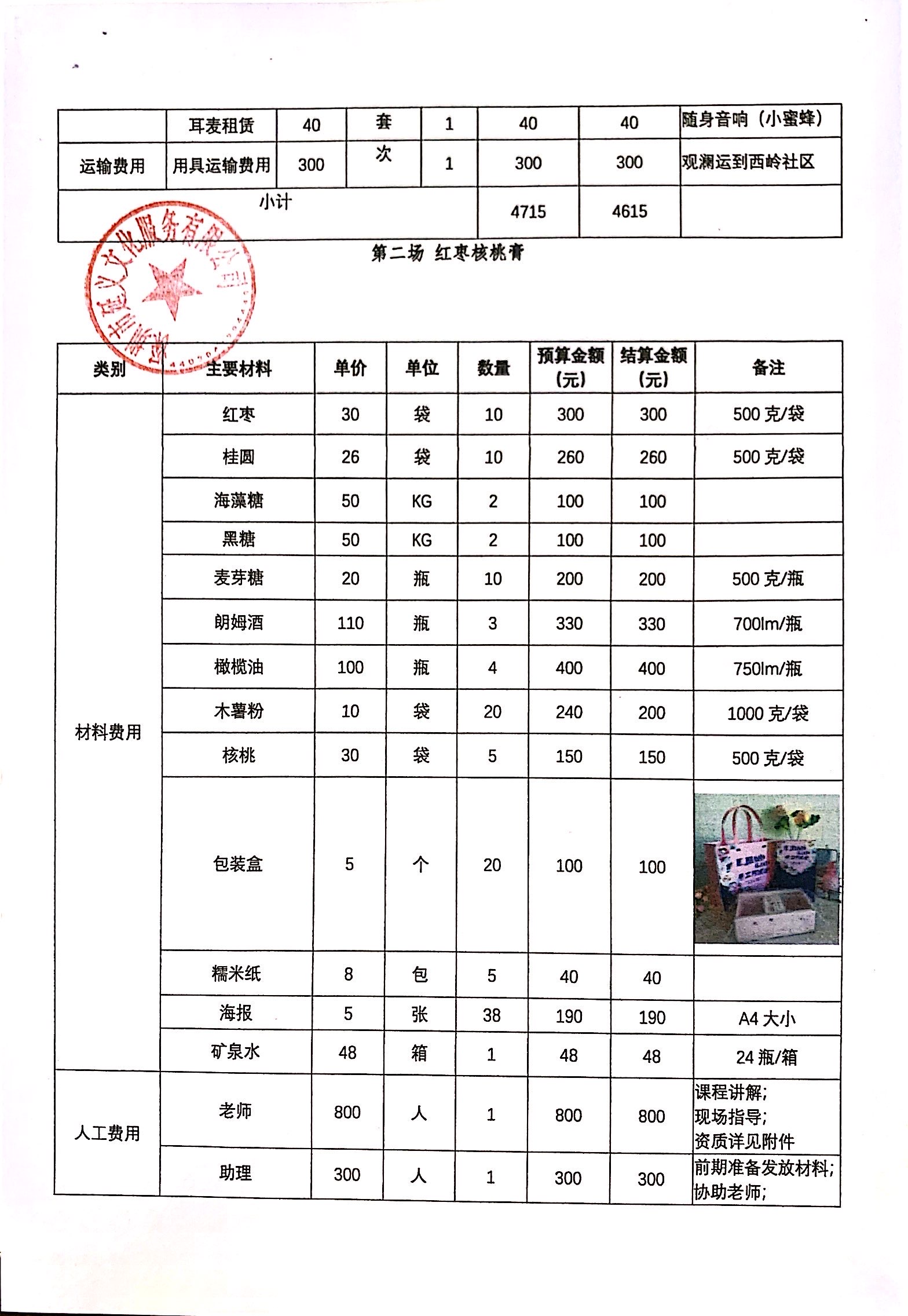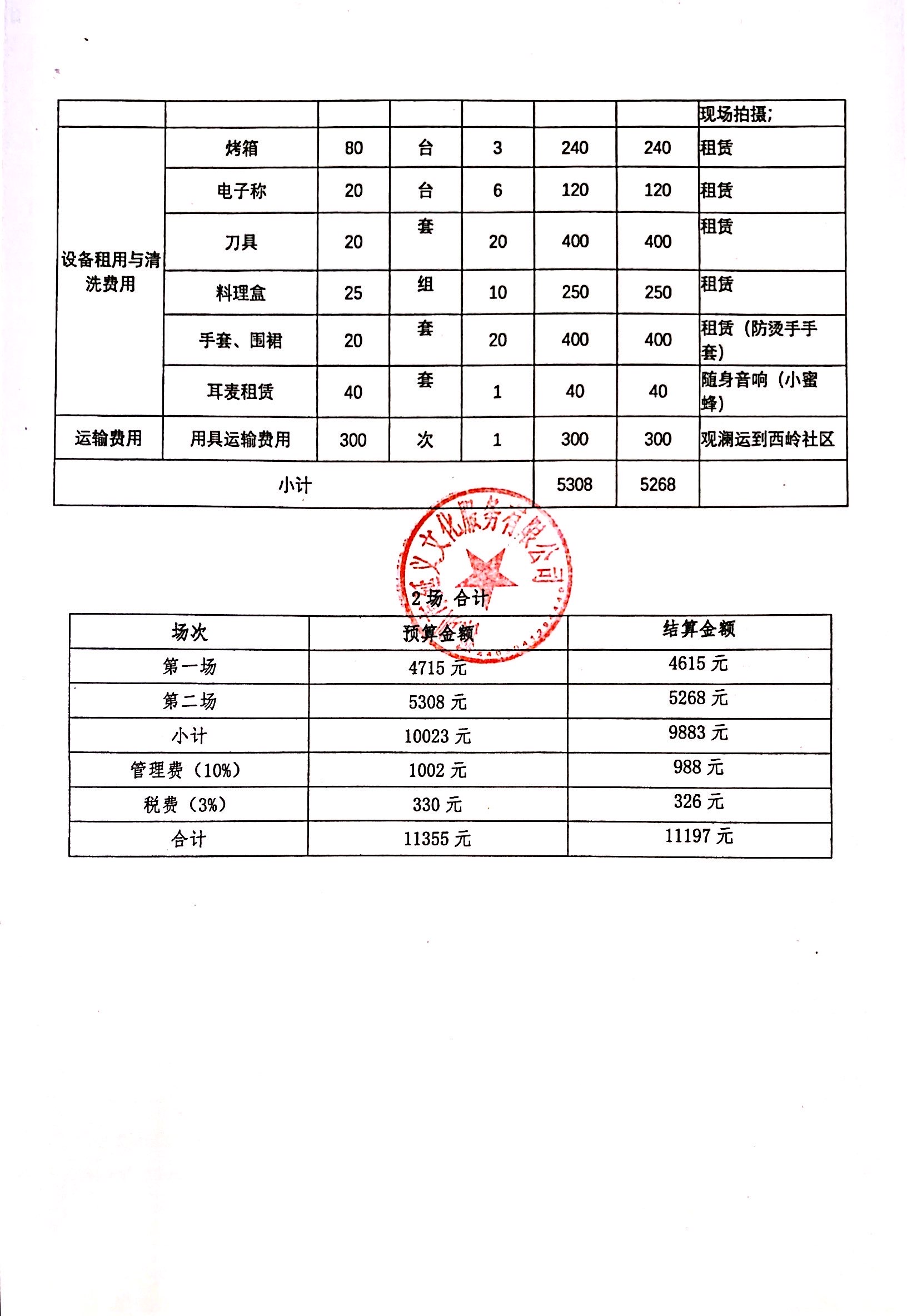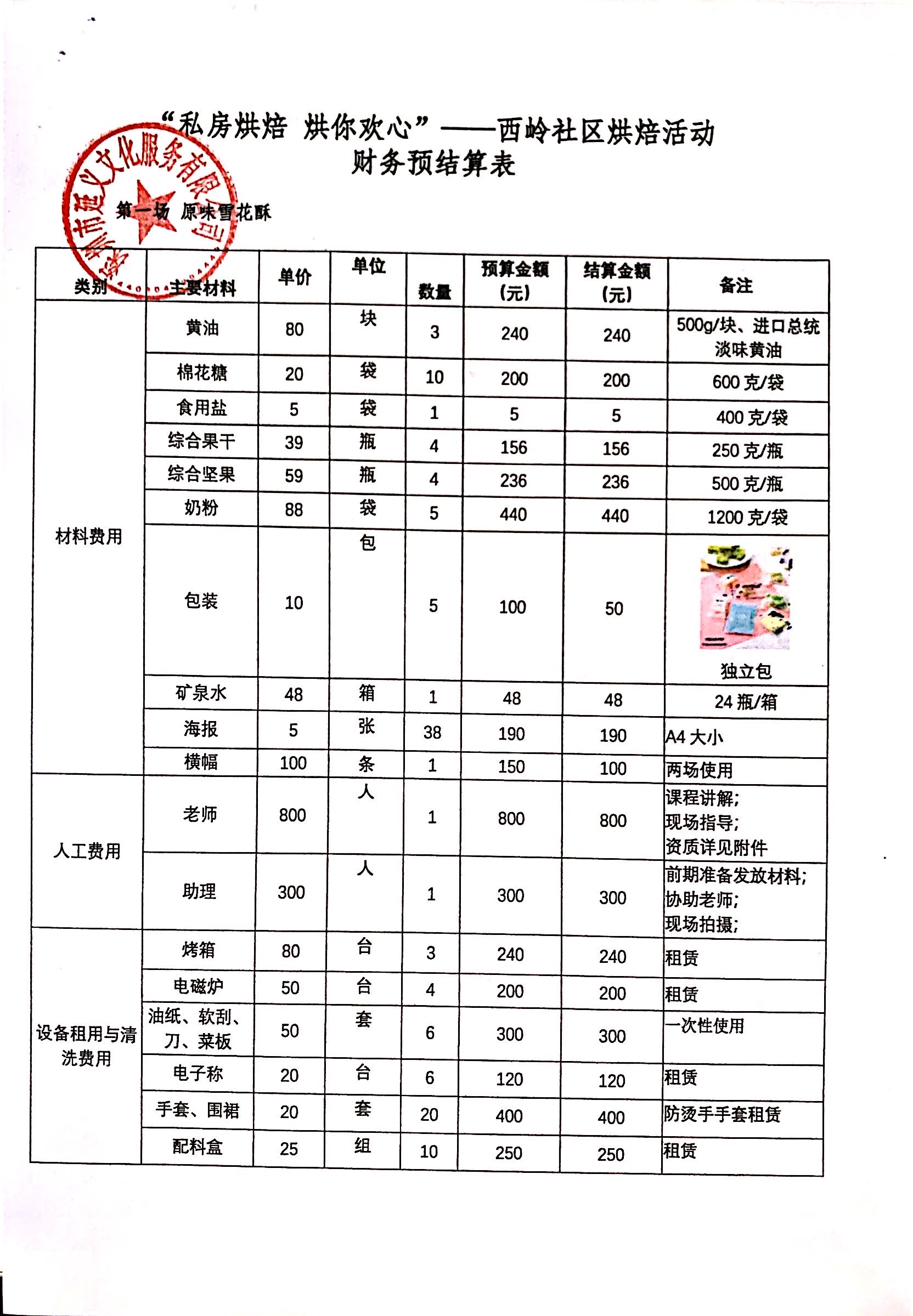 2020年莲塘街道西岭社区民生微实事“私房烘焙 烘你欢心”——西岭社区烘焙活动预结算表