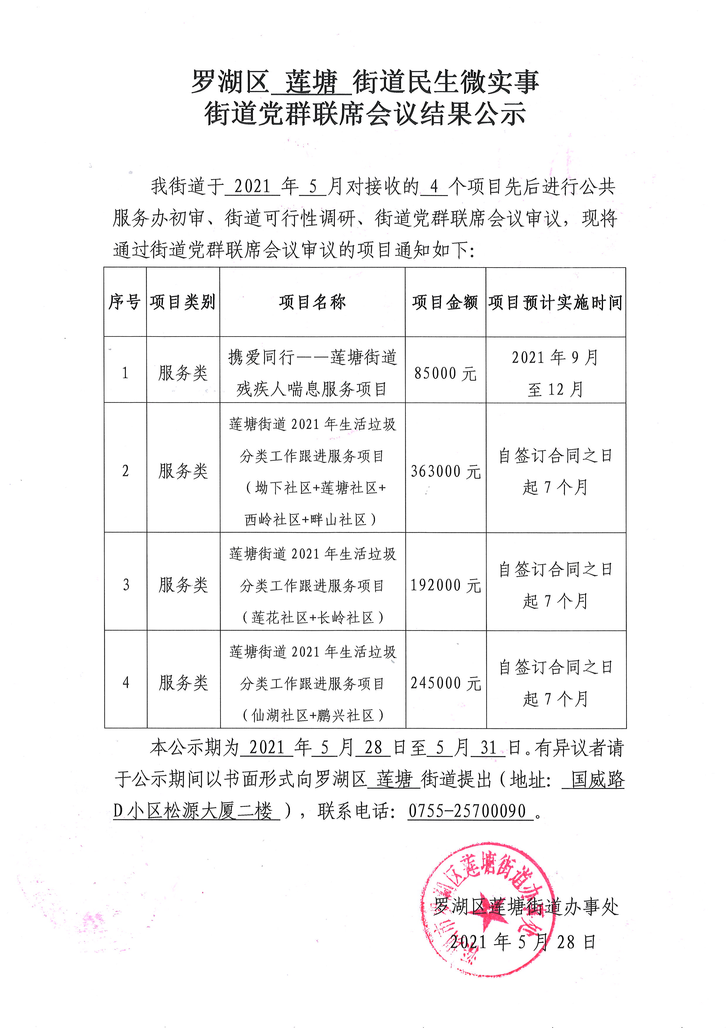 罗湖区莲塘街道民生微实事街道党群联席会议结果公示