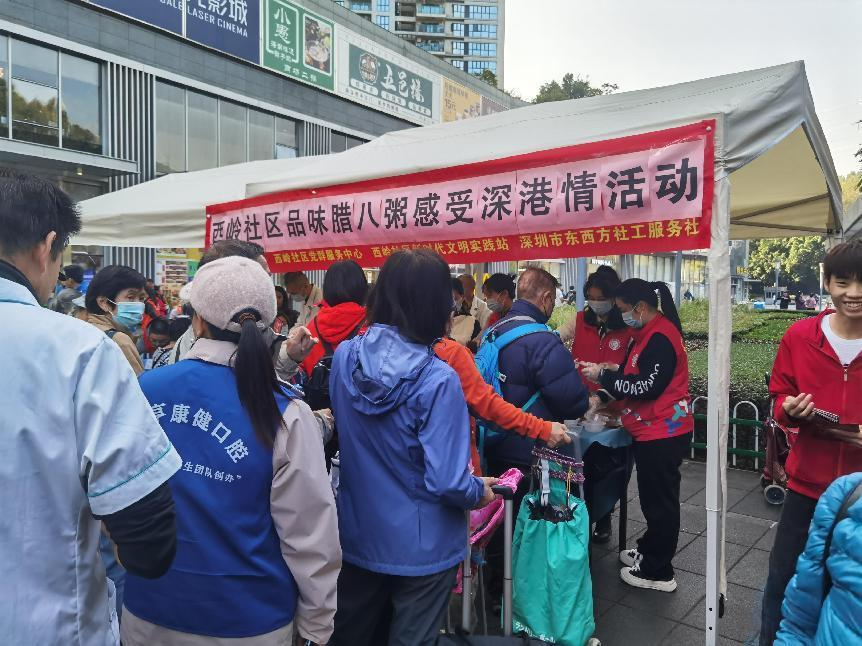 为弘扬中华民族传统文化,营造浓厚的节日氛围,近日,西岭社区党委联合深圳市东西方社工服务社、新高记粤菜湛江鸡、杨枝堂中医馆等相关单位在莲塘口岸兰亭广场举办了腊八节主题活动暨中医义诊活动。