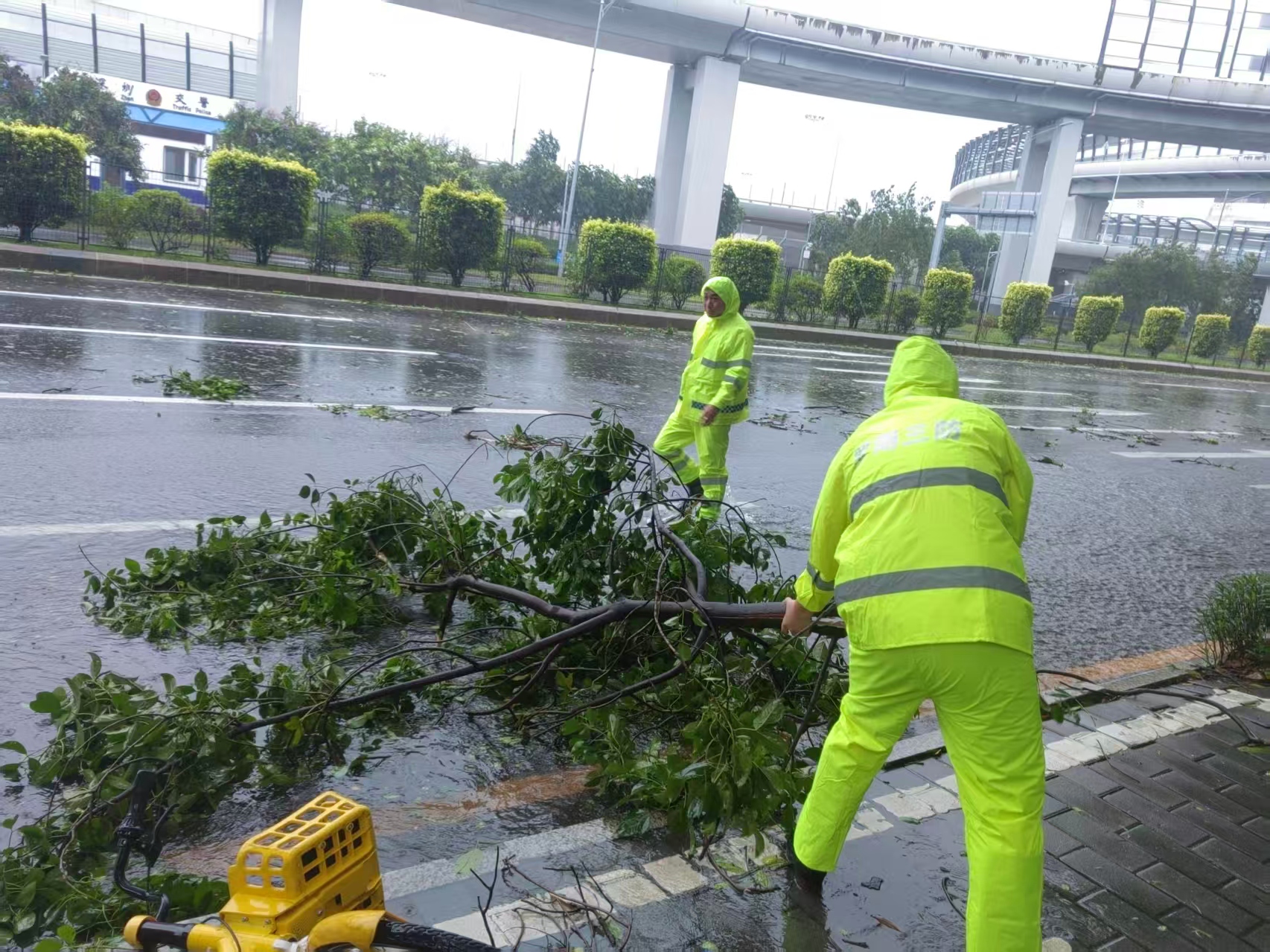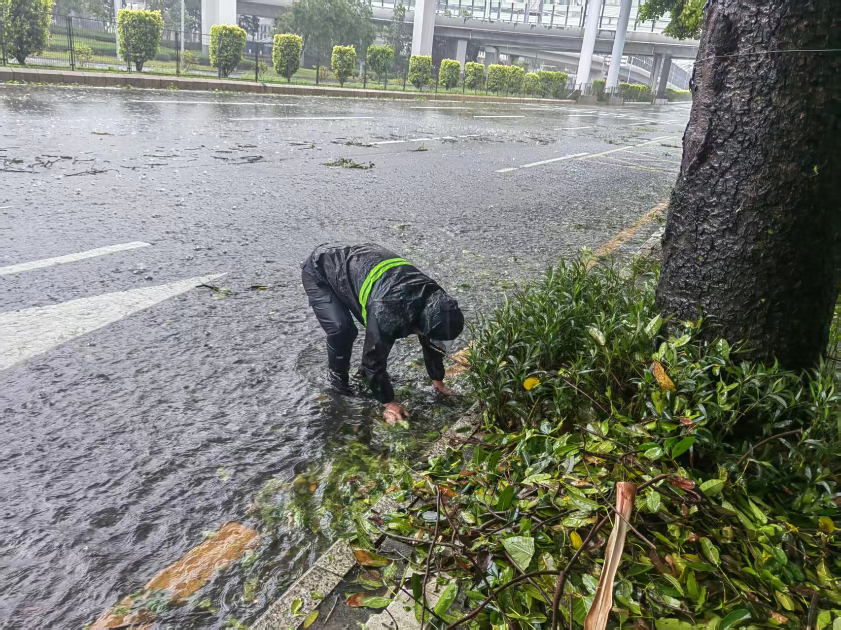 到达现场后,工作人员立即对倒伏树木展开切割和清理工作,大家分工明确,动作迅速,经过众人的不懈努力,部分倾斜倒伏的树枝得到有效清理,针对不能立即处理的树木将上报上级部门,全力消除潜在安全隐患,保障居民的生命财产安全。同时罗沙路段由于树枝杂物等导致积水较多排水缓慢,工作人员冒雨疏通雨水箅子,排水有序恢复,保障了路段的有序通行。
