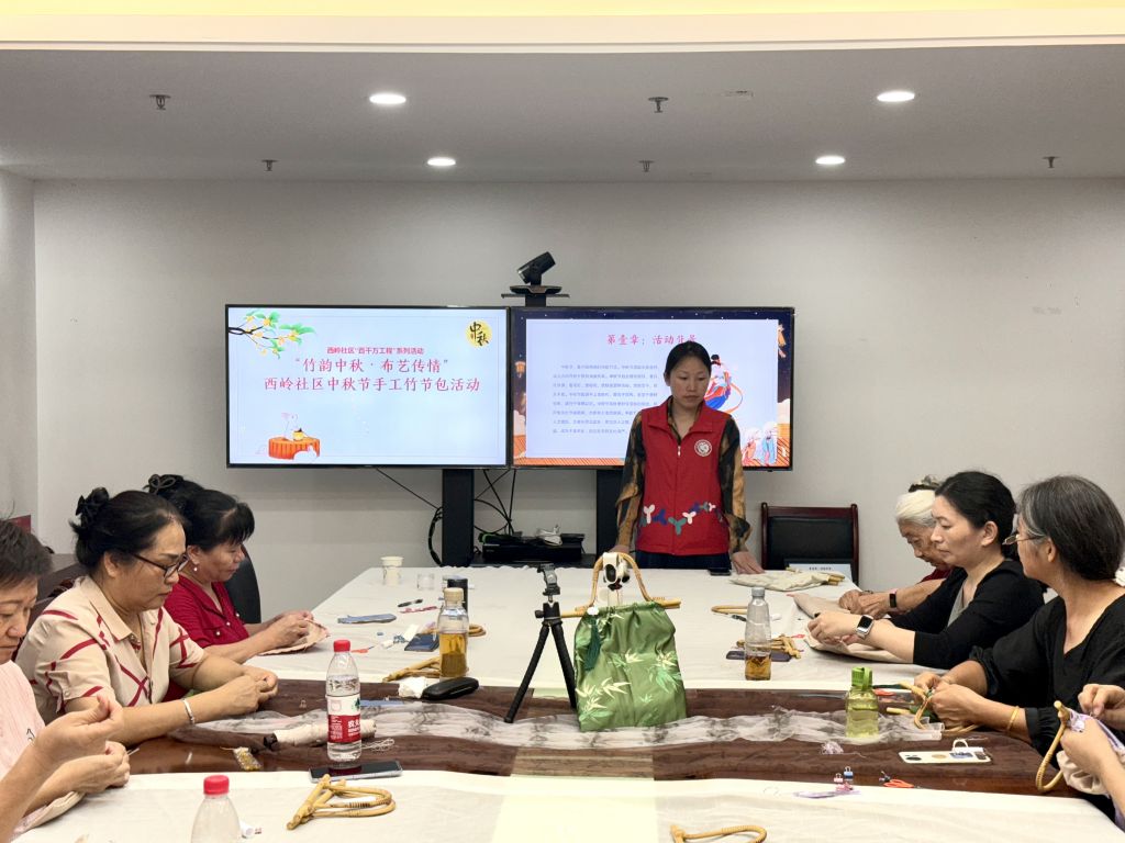西岭社区开展“竹韵中秋·布艺传情”中秋节手工竹节包活动