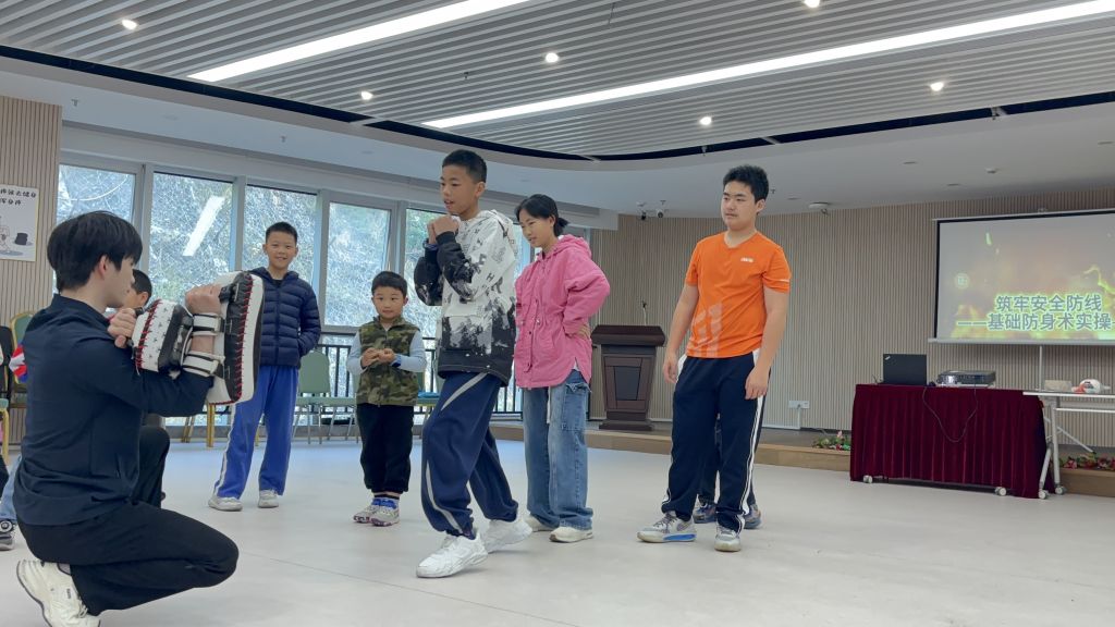 活动伊始,趣味破冰游戏打破了陌生感,让参与者快速融入集体,为后续互动奠定了轻松的氛围。随后,社工通过案例讲解、互动提问,清晰界定了欺凌的定义、表现形式,引导大家主动分享身边类似“小霸王”的现象,认识欺凌行为对受害者身心的双重伤害。社工还结合情景表演,传授了“不沉默、善求助、懂规避”的应对方法,教会辖区青少年在遇到欺凌时如何冷静处理。本次活动还特邀罗湖区武缘汇武术馆专业武术教练现场教学基础防身术,动作简单实用、易于掌握,同时着重强调防身术的教育意义——旨在自我保护而非攻击他人,传递“以正制邪、友善相处”的理念。