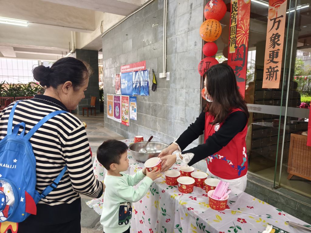 游园之余,社区工作人员早早备好热气腾腾的汤圆,一碗碗香甜软糯的汤圆送到居民手中,大家围坐在一起品尝美味、话家常。社区独居老人、社区困境儿童等特殊群体也收到了志愿者送上的汤圆与祝福,让团圆的滋味传遍社区每个角落。