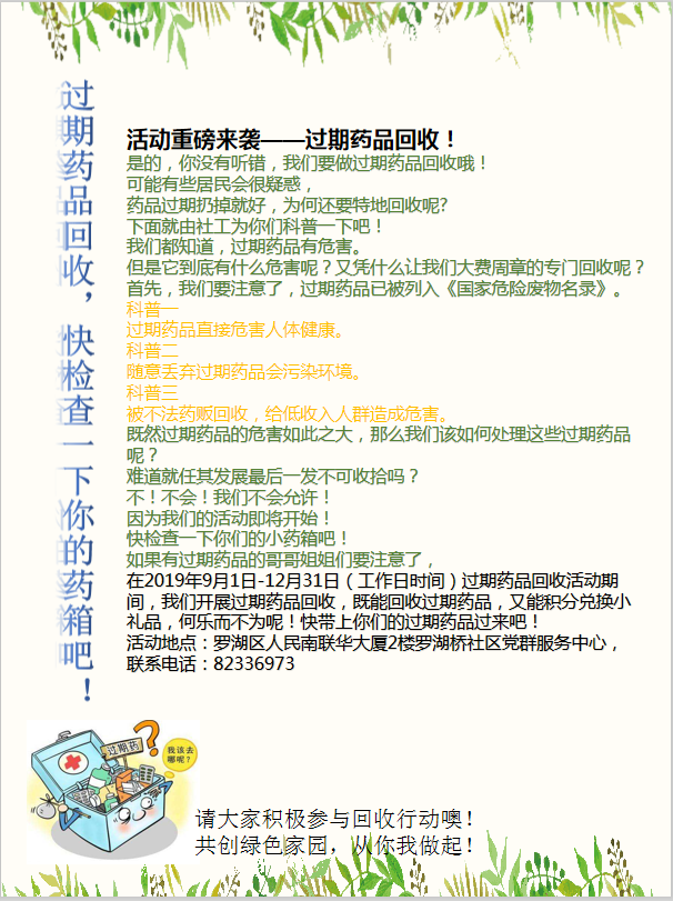 【活动通知】过期药品回收,快检查一下你的药箱吧!