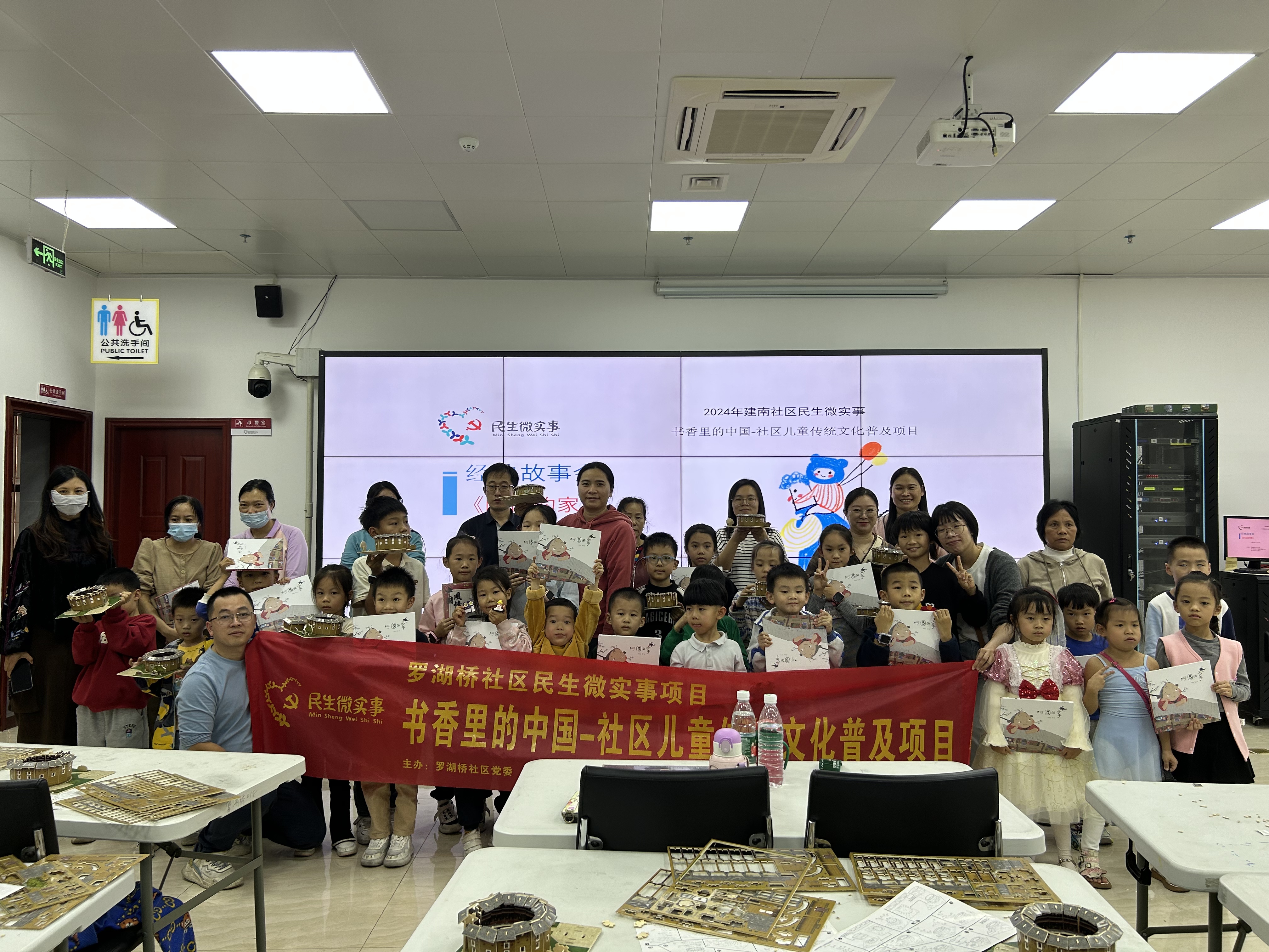 2024年12月7日下午,由罗湖区罗湖桥社区党委、罗湖桥社区党群服务中心、建南社区居委会主办的2024年民生微实事项目书香里的中国——儿童传统文化普及之【“家”文化—探寻中国建筑人文智慧】主题在罗湖桥党群服务中心二楼活动室火热开展。