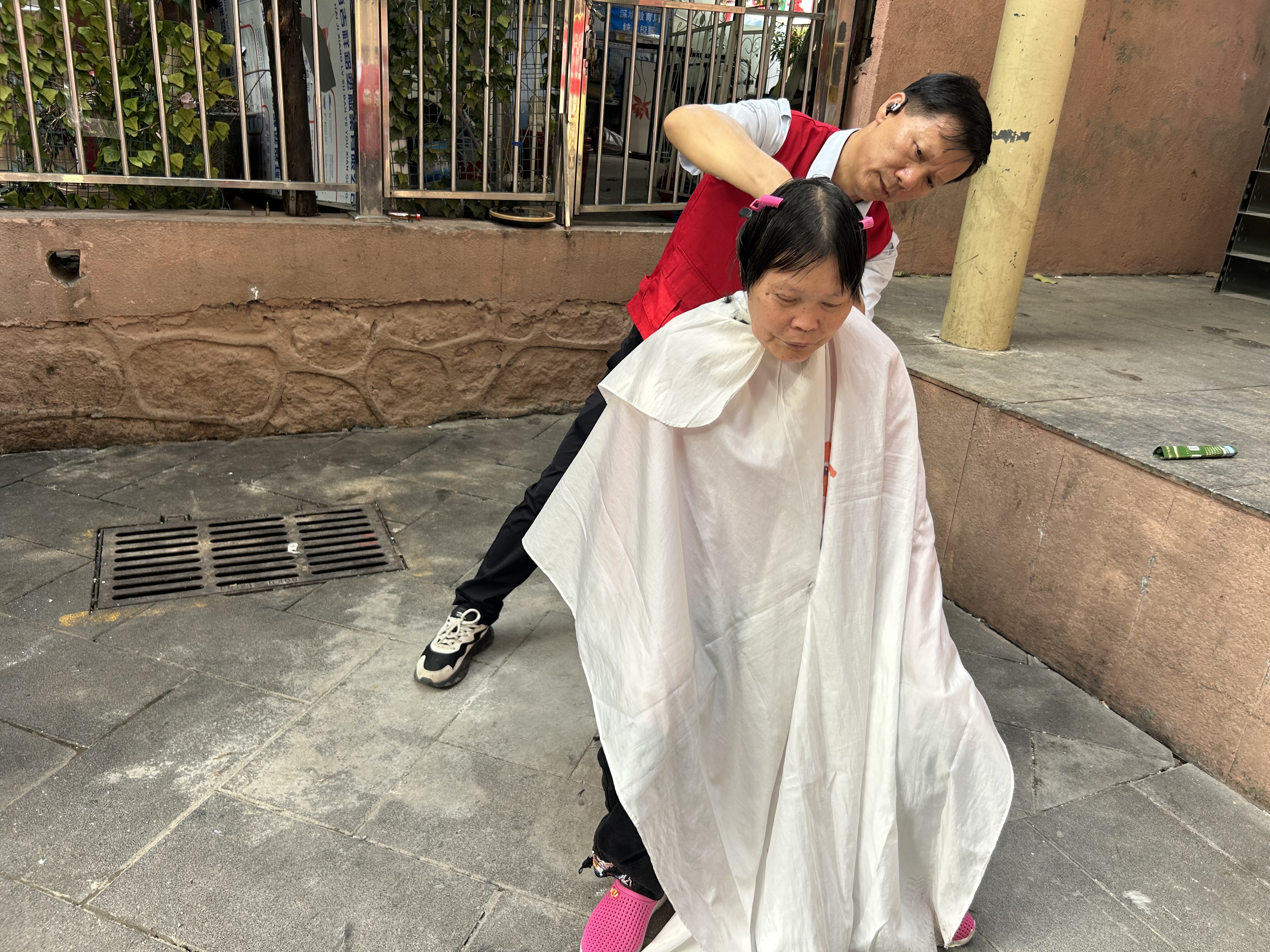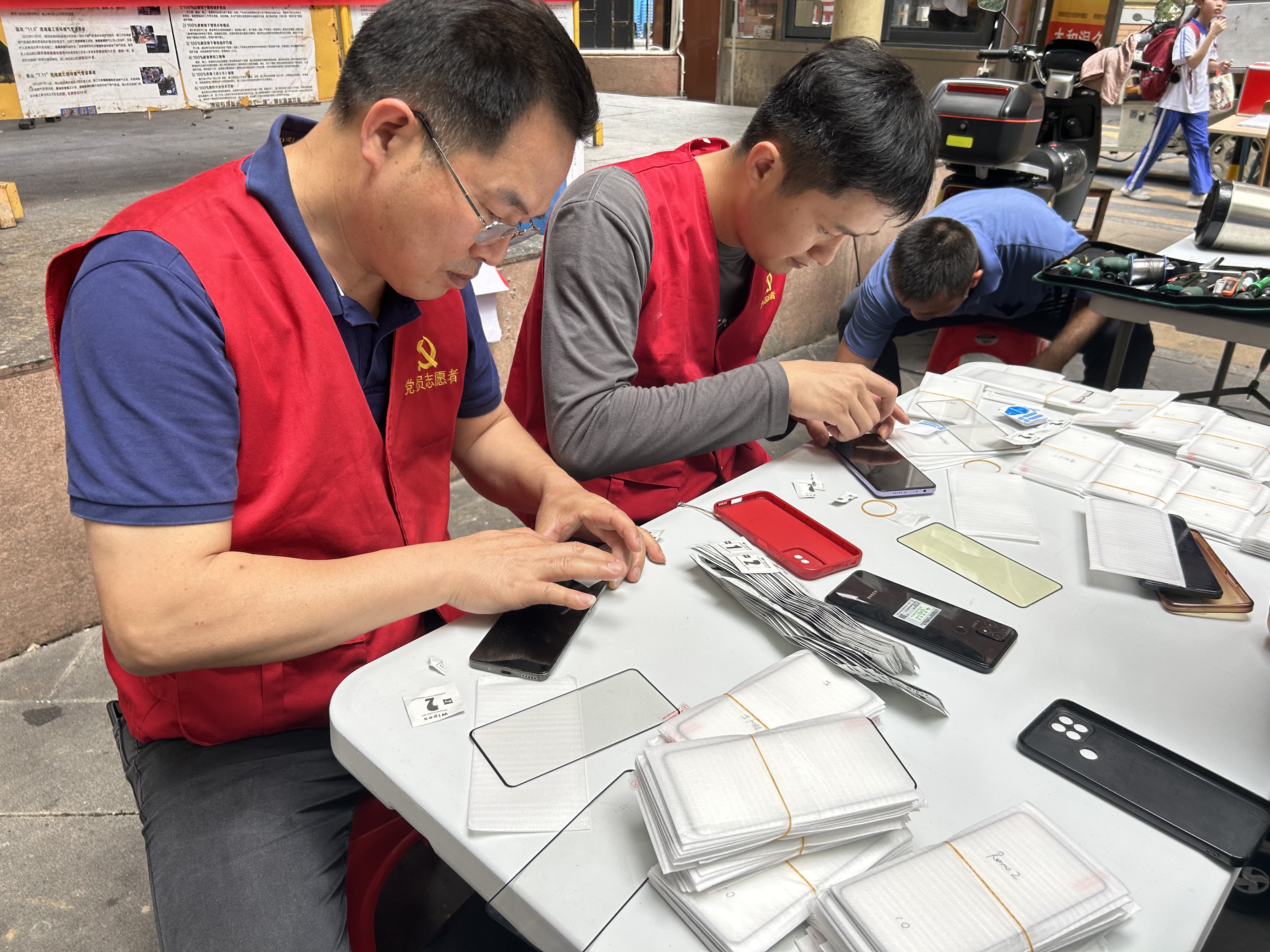 在生活服务区域,义剪摊位前早早排起了长队。志愿者们凭借专业娴熟的手法,根据居民的需求精心修剪发型,老人们修剪后精神焕发,脸上洋溢着满意的笑容。一旁的家电维修摊位同样忙碌,志愿者仔细检查故障家电,熟练地更换零件、调试电路,让“罢工”的家电重焕生机;手机贴膜摊位前,志愿者动作麻利地为居民的手机贴上保护膜,崭新的贴膜让手机焕然一新,居民们纷纷点赞。