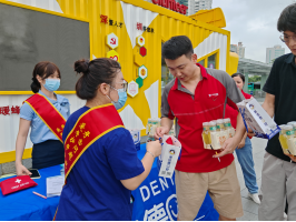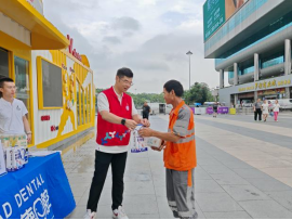 活动中,志愿者们化身“清凉使者”,一边麻利分发饮品、小风扇和防暑药品,一边与户外工作者拉家常,细致询问他们的工作难点与需求。并向他们介绍口岸暖蜂驿站的开放时间,里面有饮水机、充电器、急救箱,累了随时来歇歇脚。除了送清凉物资,活动还特别安排了口腔义诊环节。来自辖区爱心口腔医院的医生们现场为“三新”群体和过往旅人提供口腔检查、口腔健康咨询等公益服务,普及口腔保健知识,帮助劳动者提升健康意识。