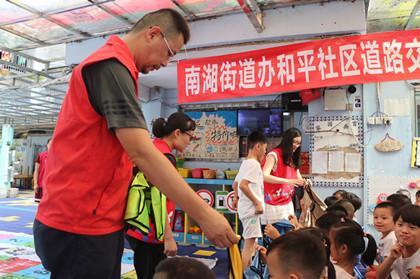 为进一步增强少年儿童的道路交通安全意识,提高自我保护能力和道路危险防范能力。2019年7月11日,结合“罗湖区级民生微实事项目-平安相伴、花季护航“活动,和平社区党群服务中心与罗湖区暖阳公益事业发展中心、和平社区交安站、深圳市航运总公司幼儿园一起,在辖区内开展“道路交通安全”宣传活动。