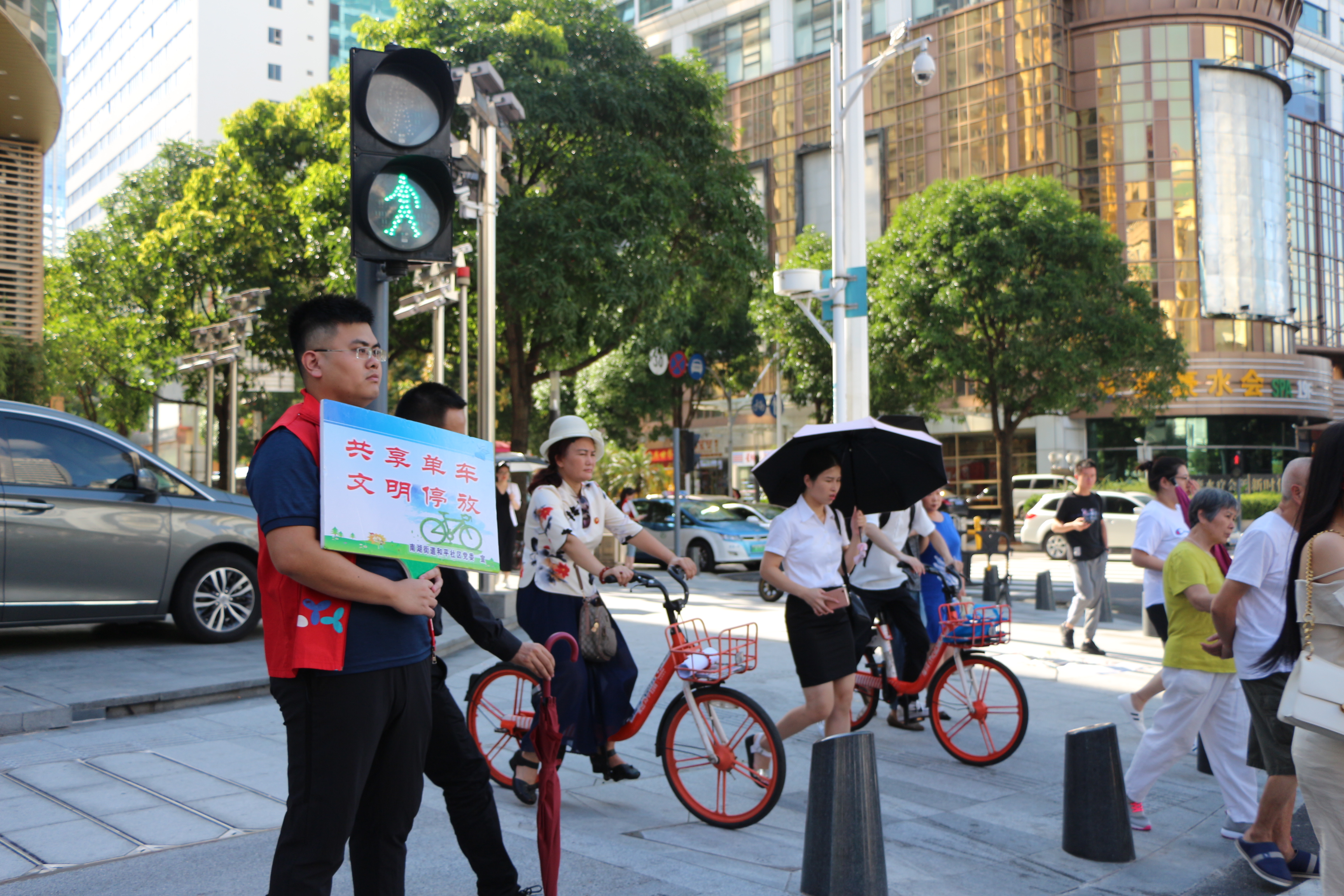 综合部驻点干部与社区全体工作人员、20余名青年志愿者,居民代表等在辖区主次干道及沿线路段,分别开展交通文明劝导、环境大清扫和共享单车整理等活动,并同时检查创文宣传点位等情况。
