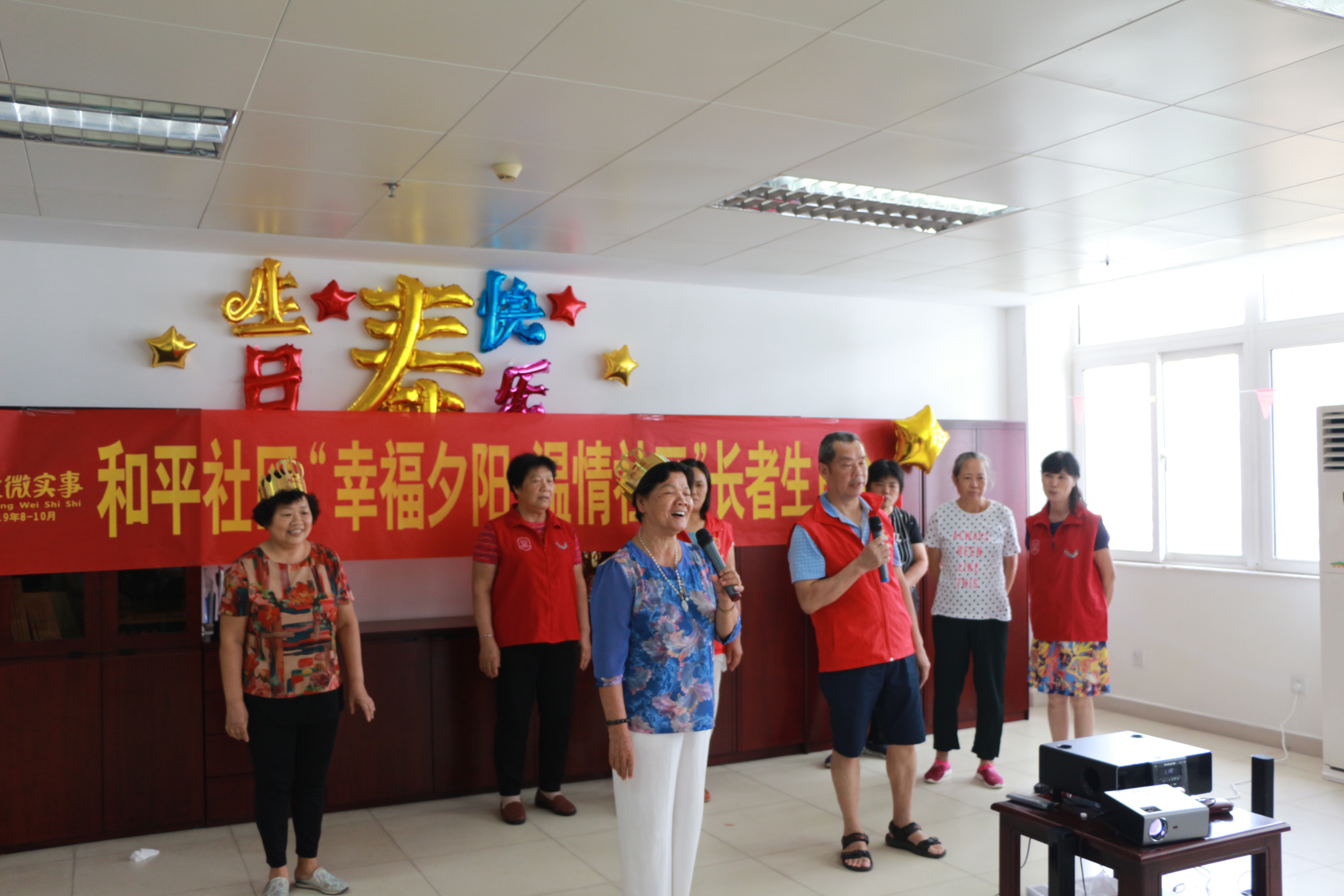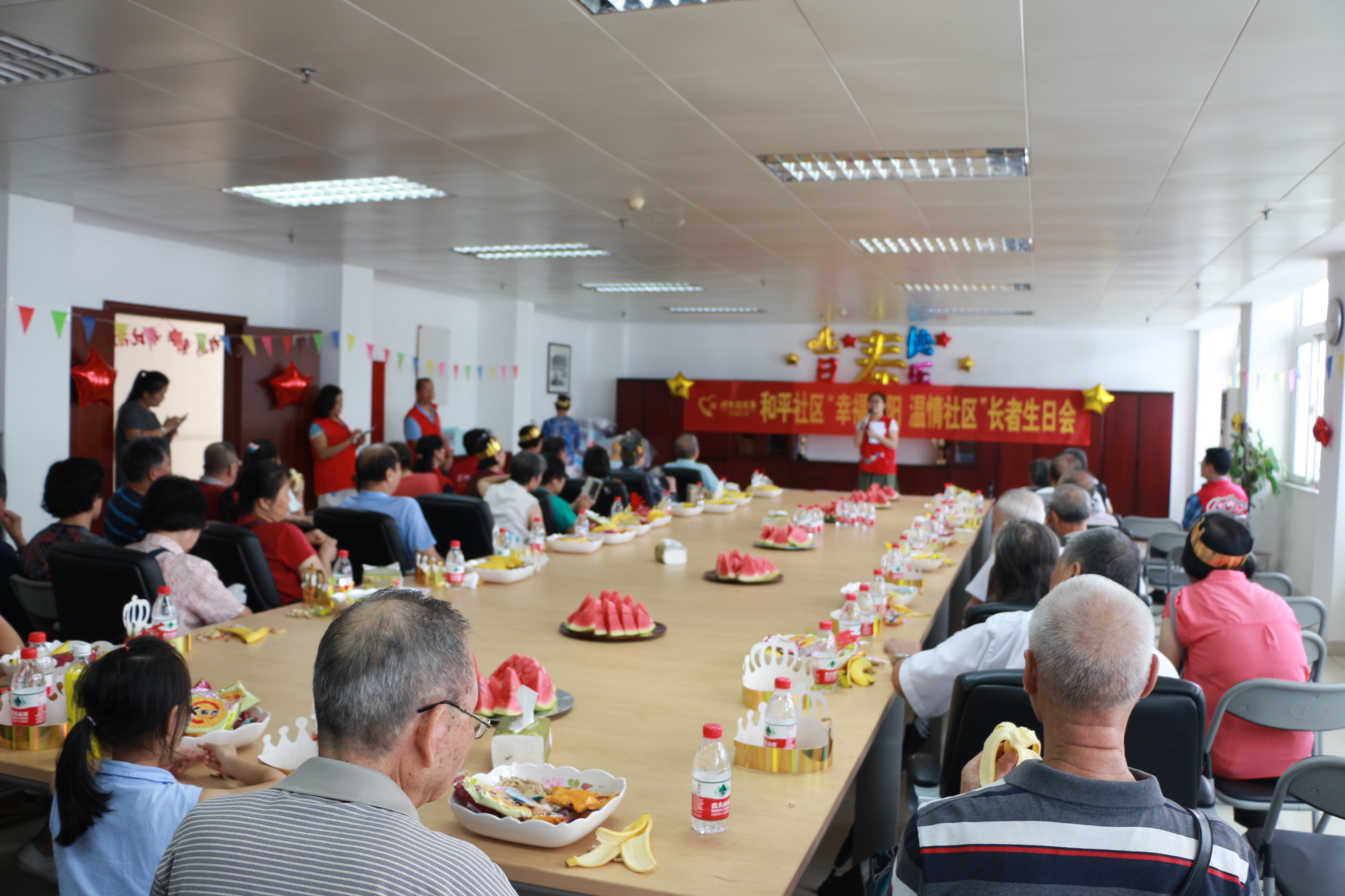和平社区讯 8月22日下午,由和平社区党委、和平社区居委会主办,和平社区邻里互助协会承办的“幸福夕阳-温情社区”长者生日会,在和平大厦B座6楼活动室隆重举行,共有47位寿星到场。