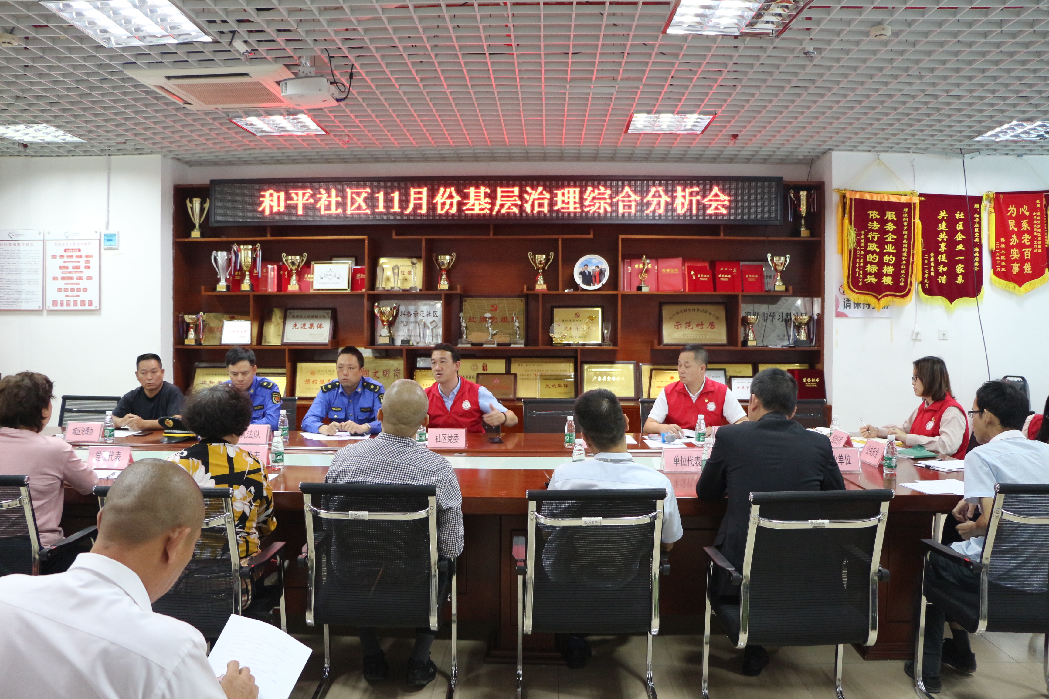 和平社区讯 2019年11月7日早上10点,由和平社区党委召开了和平社区11月份基层治理综合分析会暨创文工作冲刺阶段部署会,社区党委书记、工作站站长姜德荣,社区警务室警长梁宁,和平执法中队王天苏,以及安全生产、城区治理、重点企业、物业公司、清运作业单位负责人,社区党员代表、美好社区联络员等代表出席此次会议。