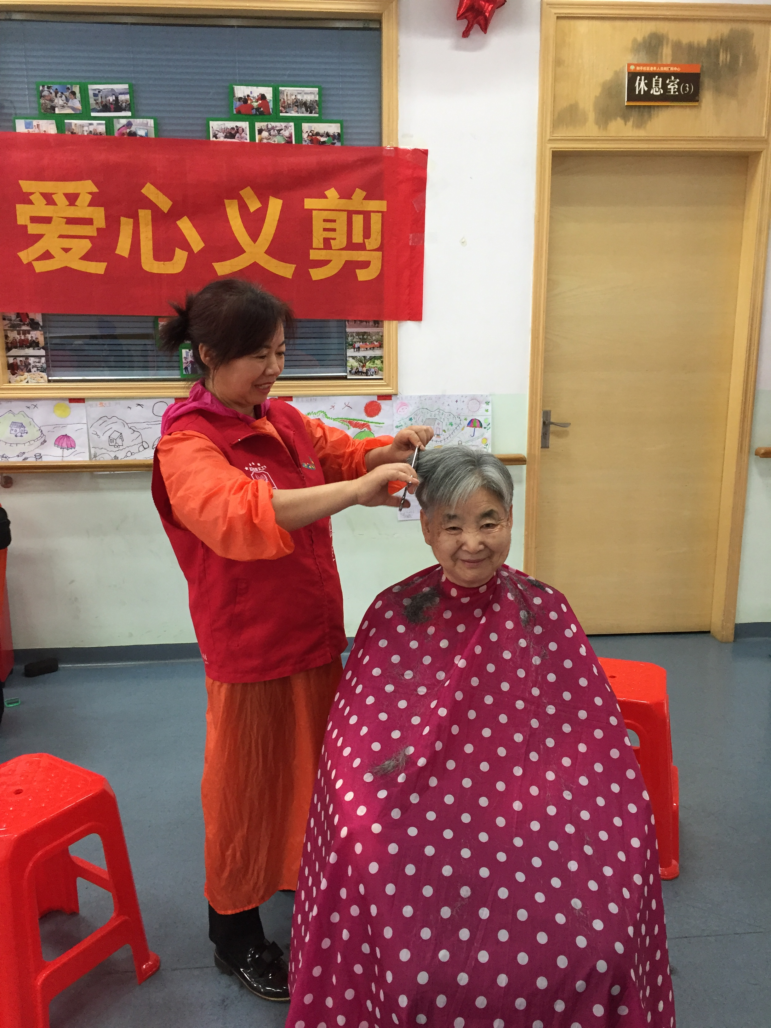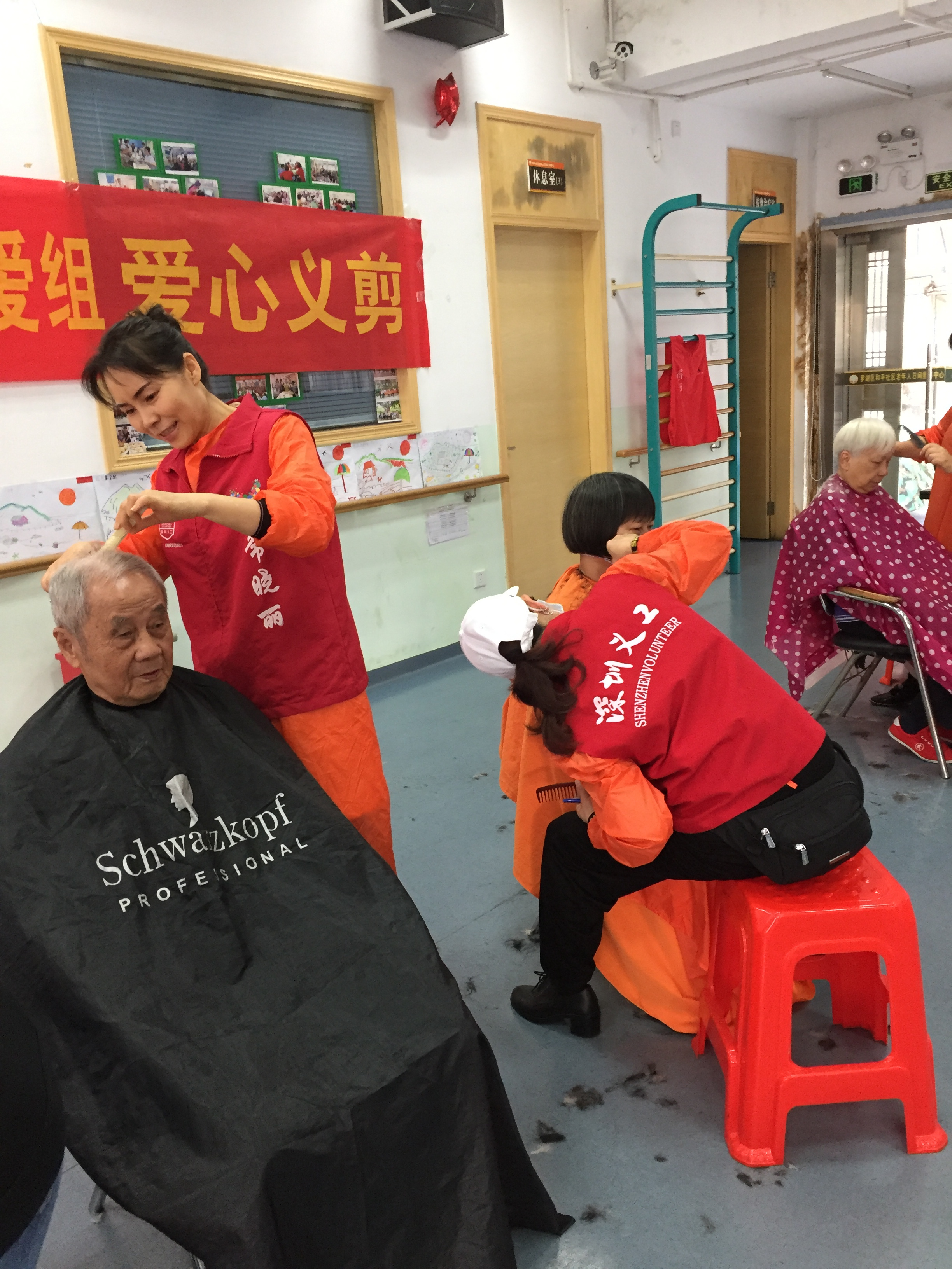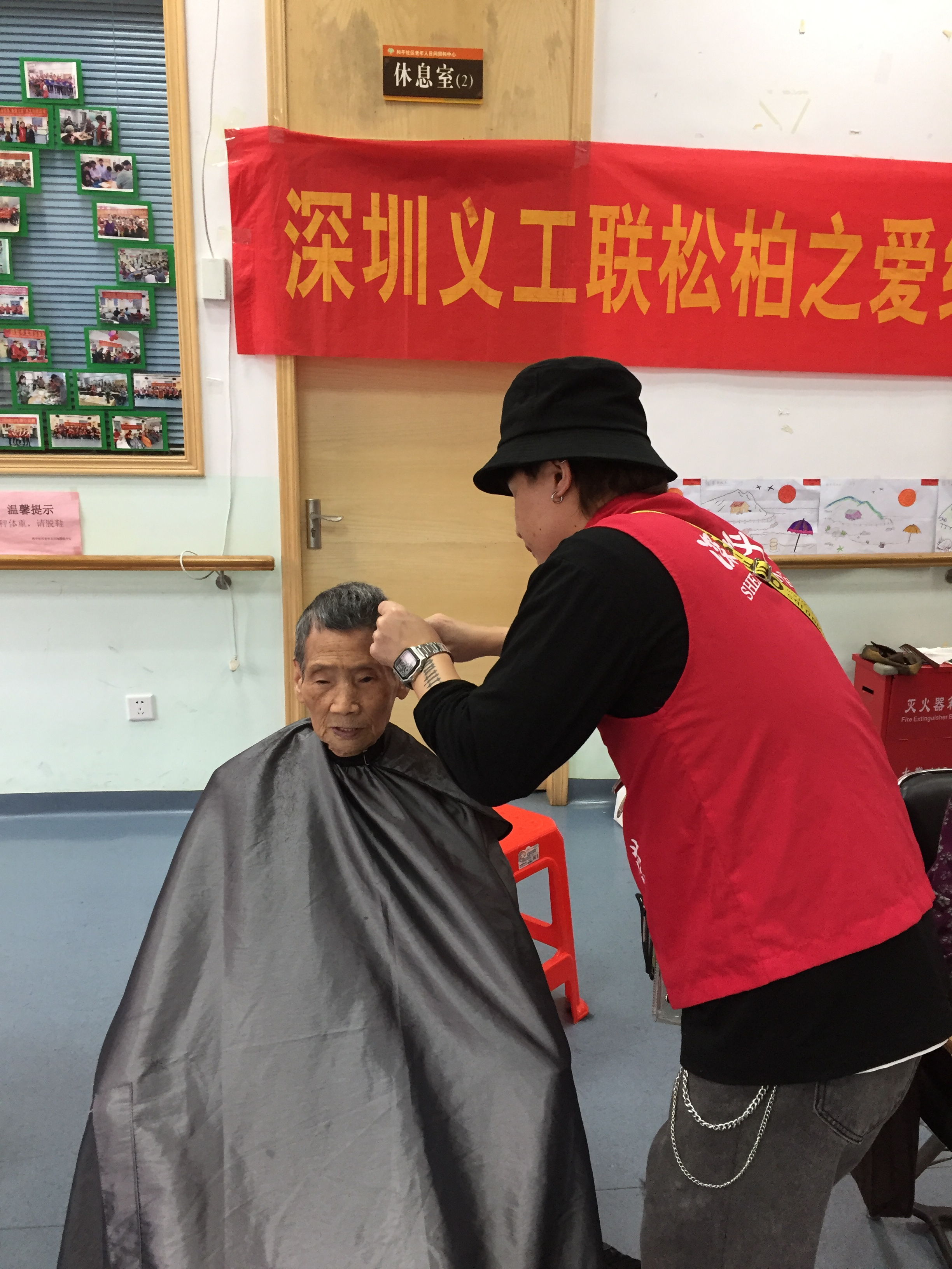 和平社区讯 2019年12月25日上午,和平社区联合老年人日间照料中心、深圳市义工联松柏之爱组开展“爱心义剪”活动。