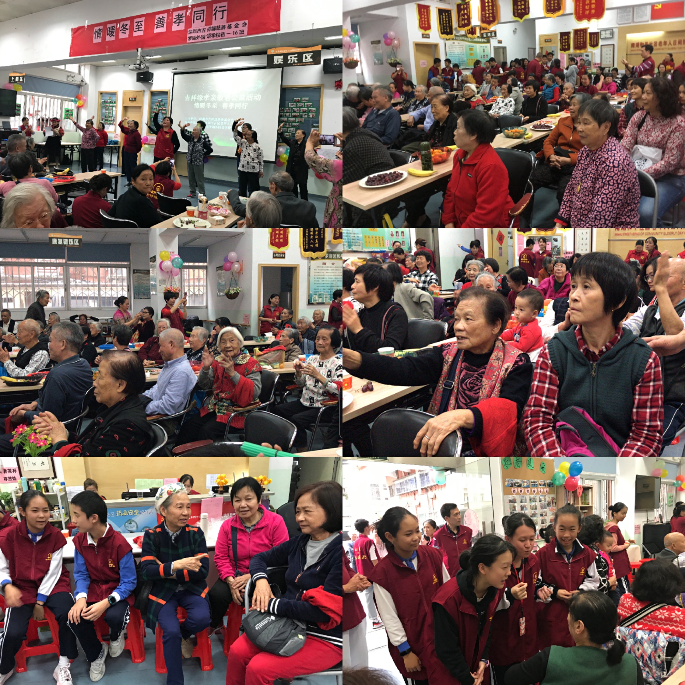 活动现场气氛活跃,由深圳市吉祥缘慈善基金会、深圳市罗湖外国语初中部学校(初一16班)的同学们,为社区长者们表演了一场丰富多彩的节目,期间志愿者和青少年们还为长者准备了水果和糕点,与长者们细心的交谈,嘘寒问暖,由深圳市吉祥缘慈善基金会为长者们赠送了爱心围巾,现场气氛很温馨。