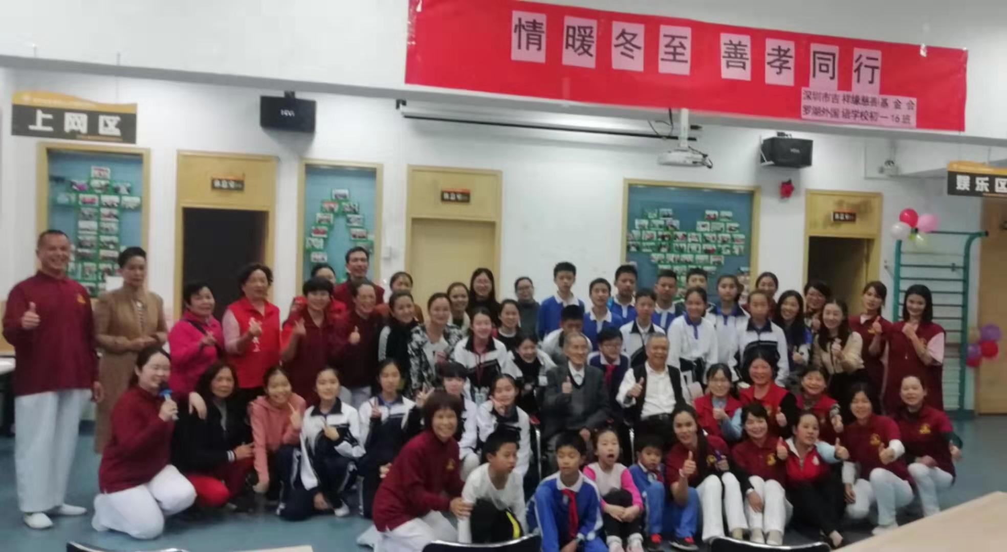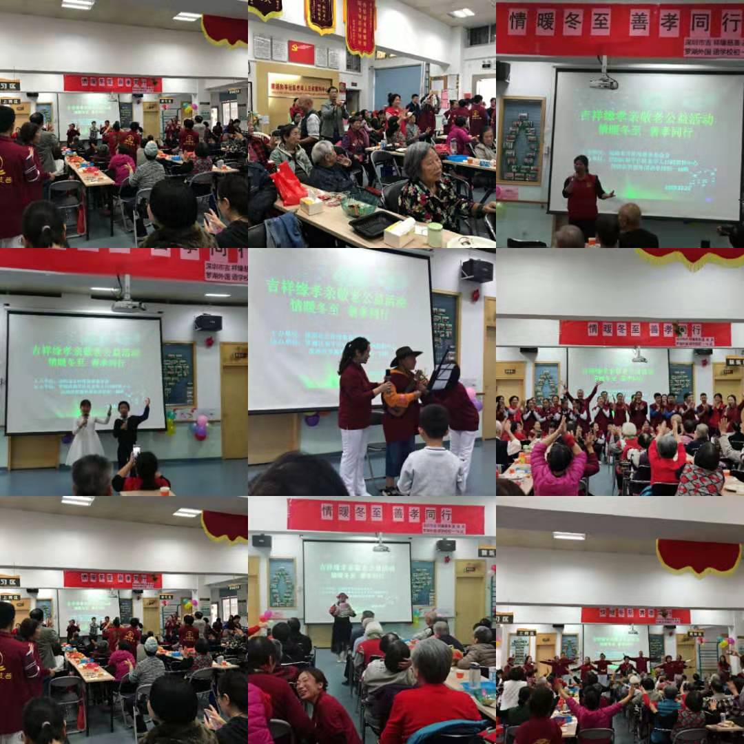 和平社区讯 在冬至来临之际,2019年12月21日,和平社区党委、居委会、服务中心、老年人日间照料中心携手深圳市吉祥缘慈善基金会、深圳市罗湖外国语初中部学校(初一16班)在外运大院联合举办“情暖冬至,善孝同行”公益活动,吸引了65名长者参加。