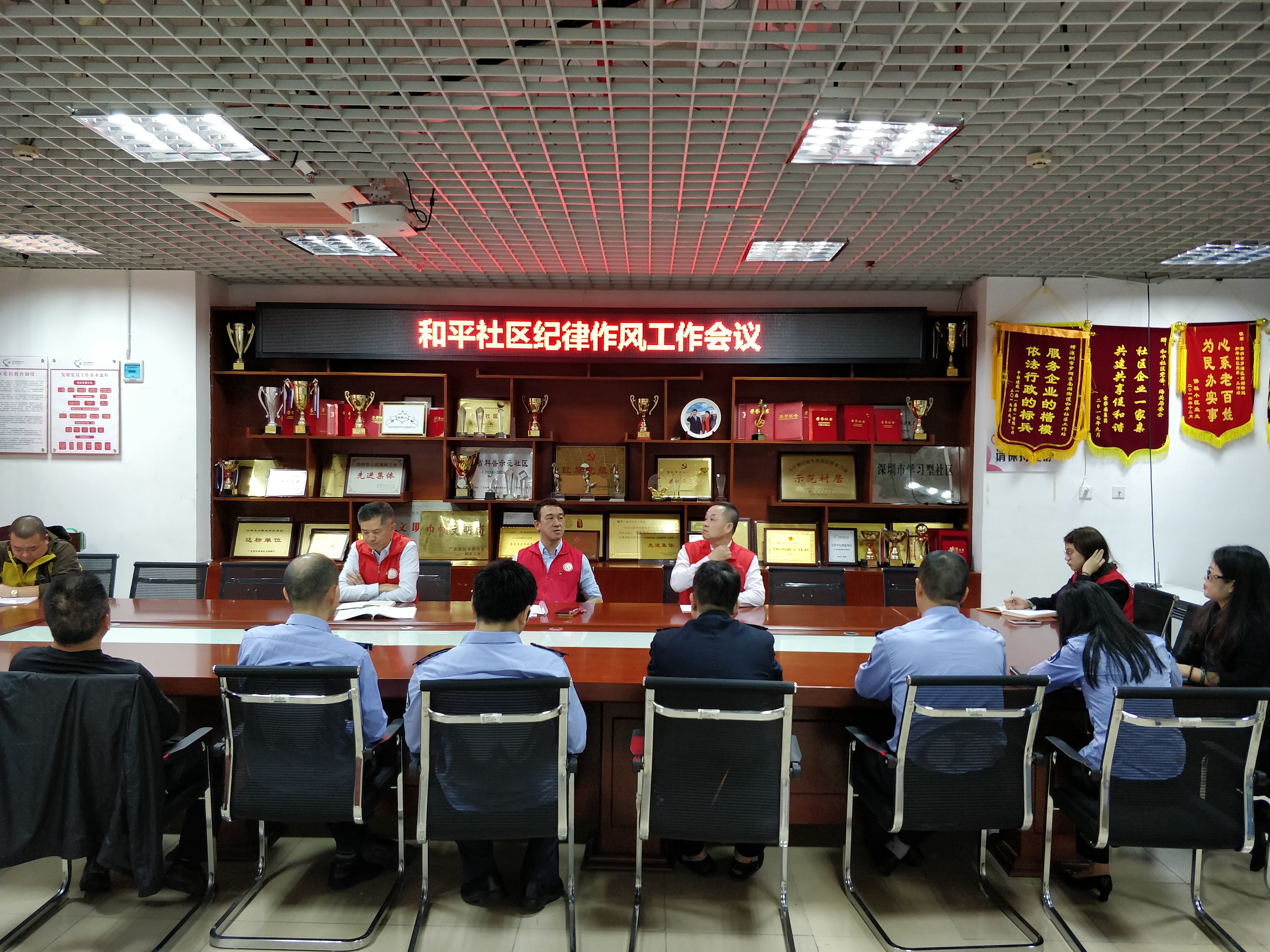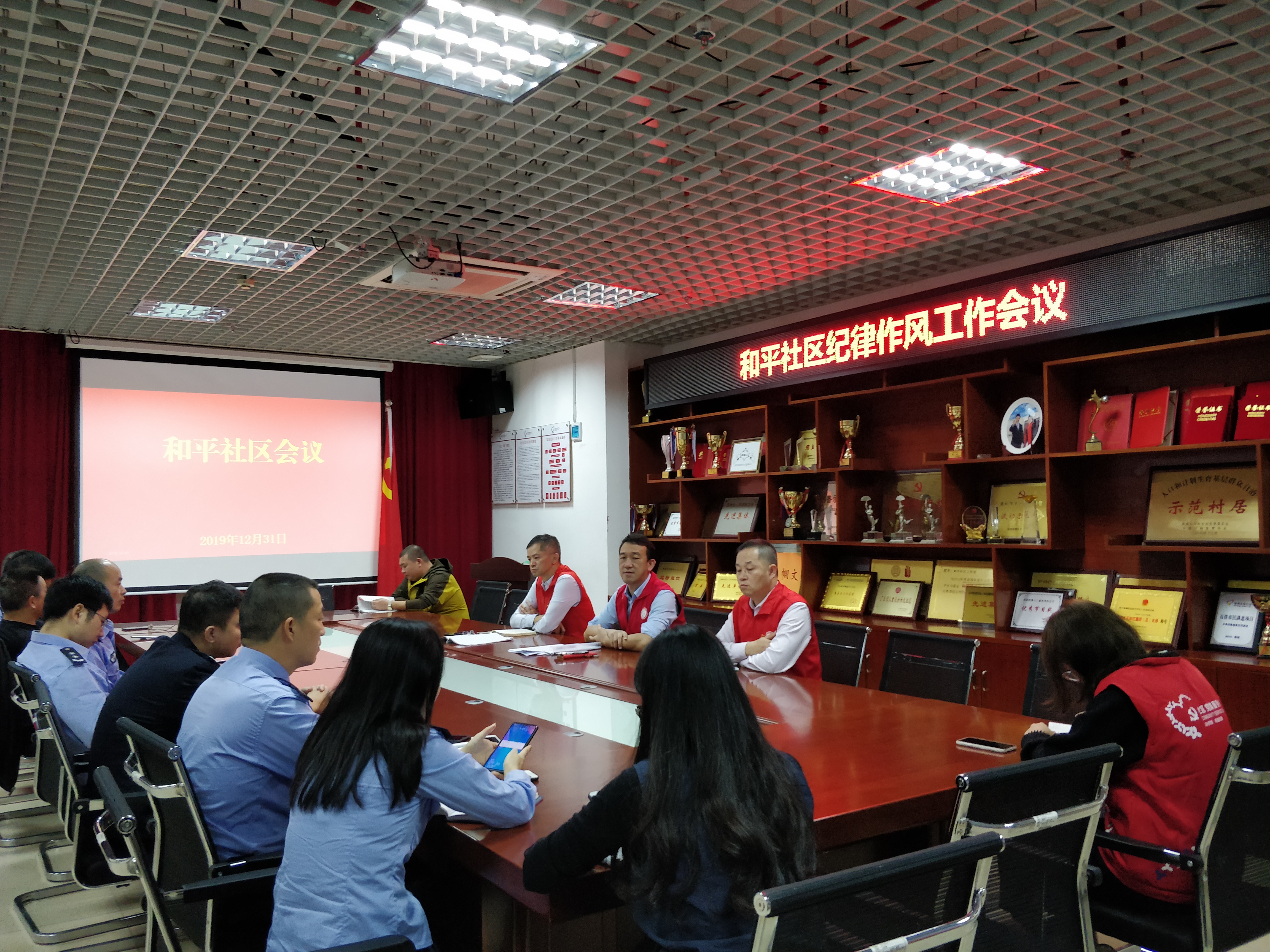 和平社区讯 2019年12月31日,和平社区召开纪律作风工作会议,全体工作人员参加。会议由社区党委书记姜德荣同志主持。