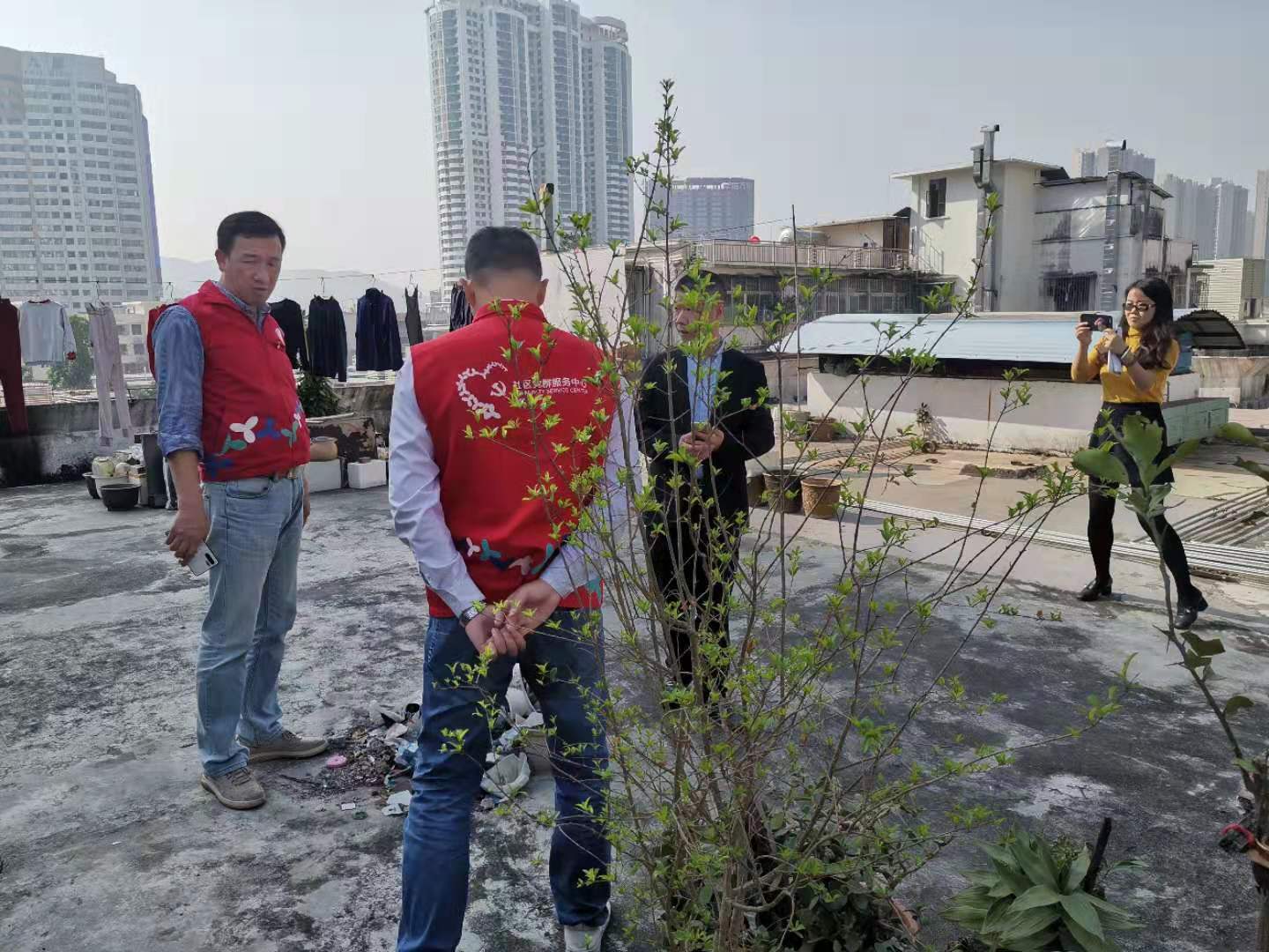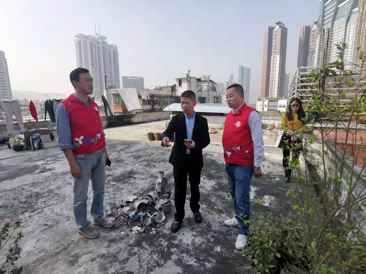 和平社区讯 2019年12月25日,和平社区党委书记,工作站站长姜德荣同志与副站长陈少斌同志,社区网格员一起,回看和平社区外运大院天台杂物堆积整改落实情况。天台杂物堆放极易引发用电、用气等安全问题,和平社区将加大隐患排查力度,通过派发宣传资料等形式向居民讲解用电用气安全常识、杂物堆放安全隐患等问题,提高居民应急处置能力。