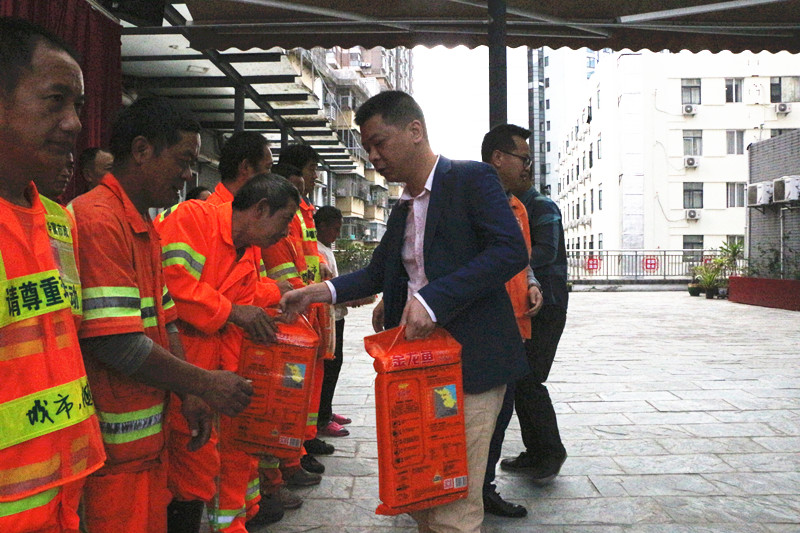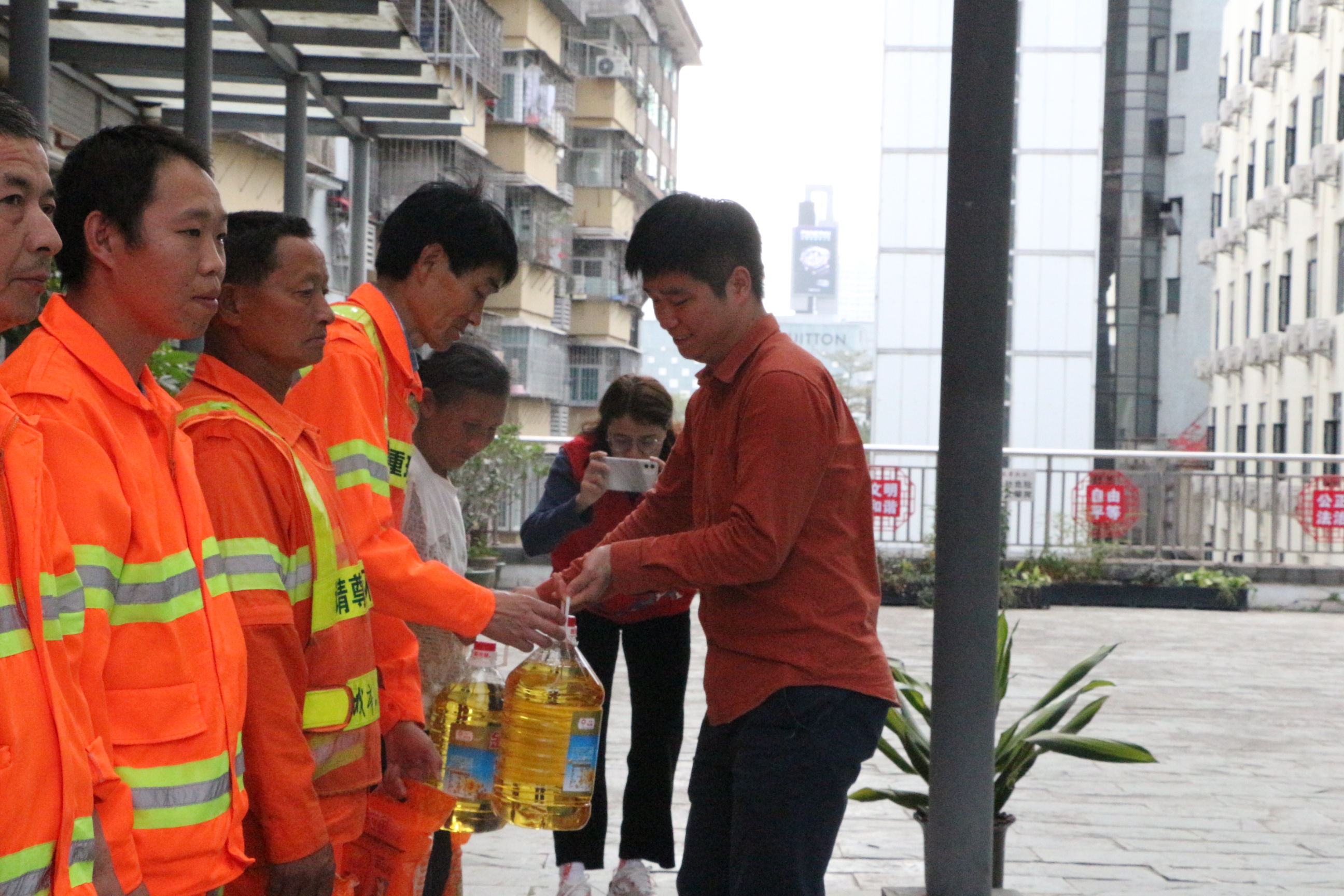 活动中,区党代表与社区党委、爱心企业负责人为环卫工人送上了慰问品,感谢他们长年累月为保持社区优美环境所作出的贡献,并勉励他们节日期间坚守工作岗位,继续发扬艰苦奋斗、爱岗敬业的优良作风。