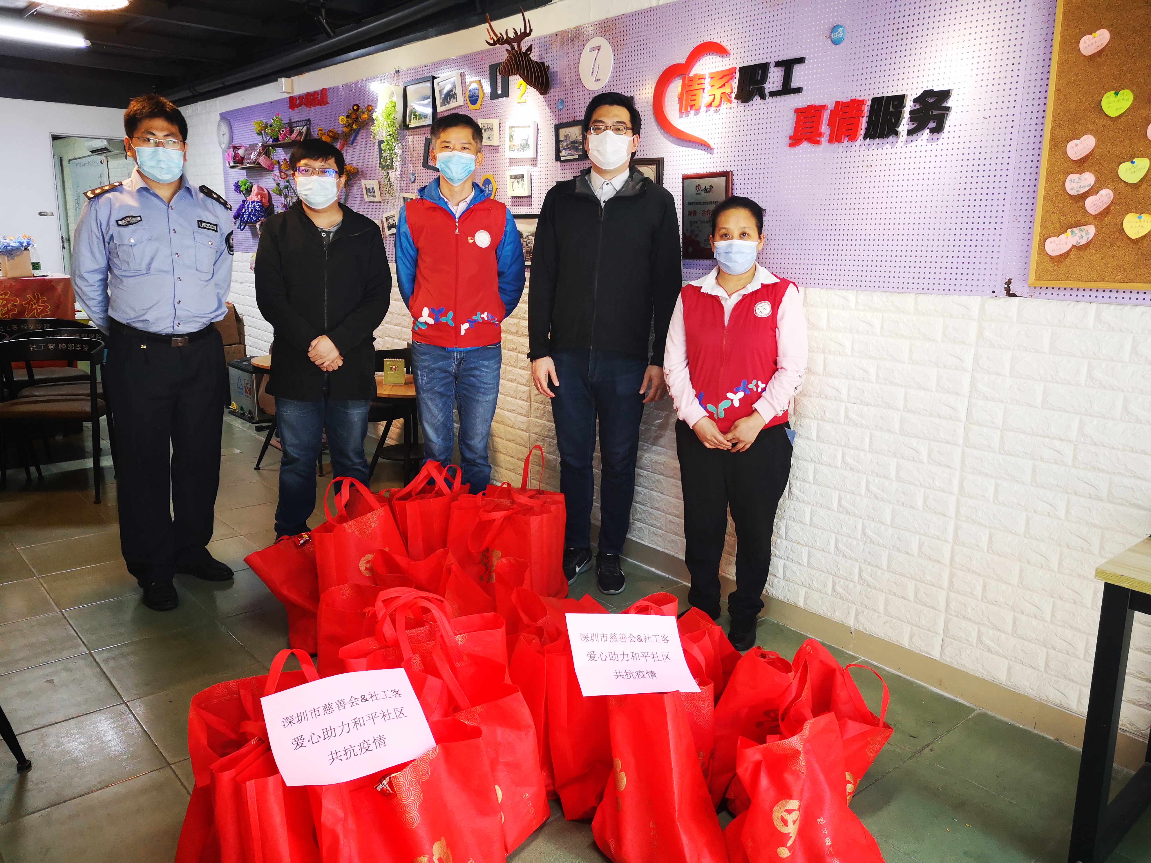 和平社区讯 2020年3月11日下午,和平社区工作人员接过由深圳市慈善会、社工客社会创新发展中心捐赠的30份“抗疫爱心包”后,接着由社区志愿者把爱的礼物和问候传递到长者、困难家庭手上,让他们在困境中感受到来自社会各界的关心和慰问。(来源:和平社区 通讯员:梅健、林秋兰 编辑:郑晓琪)
