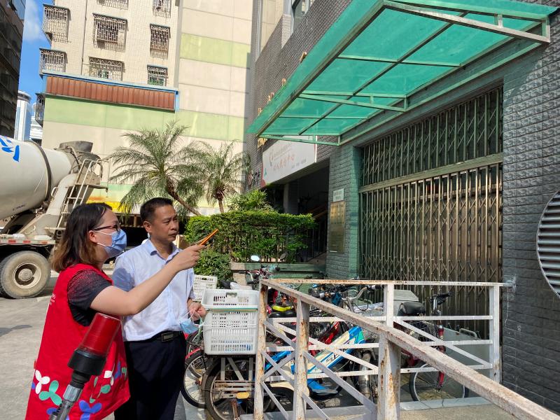 和平社区党委与中怡小区管理处主任沟通创文检查发现问题二