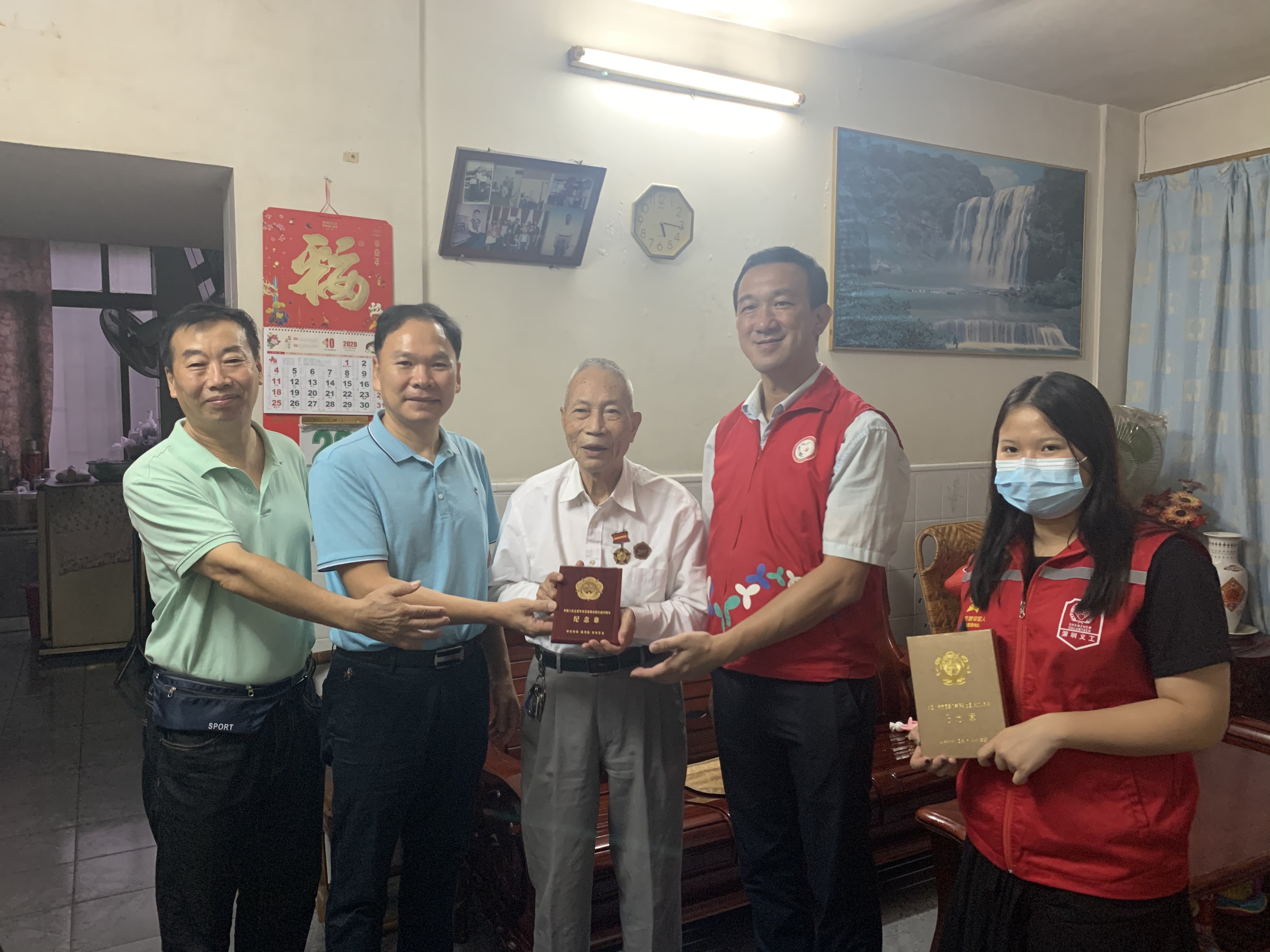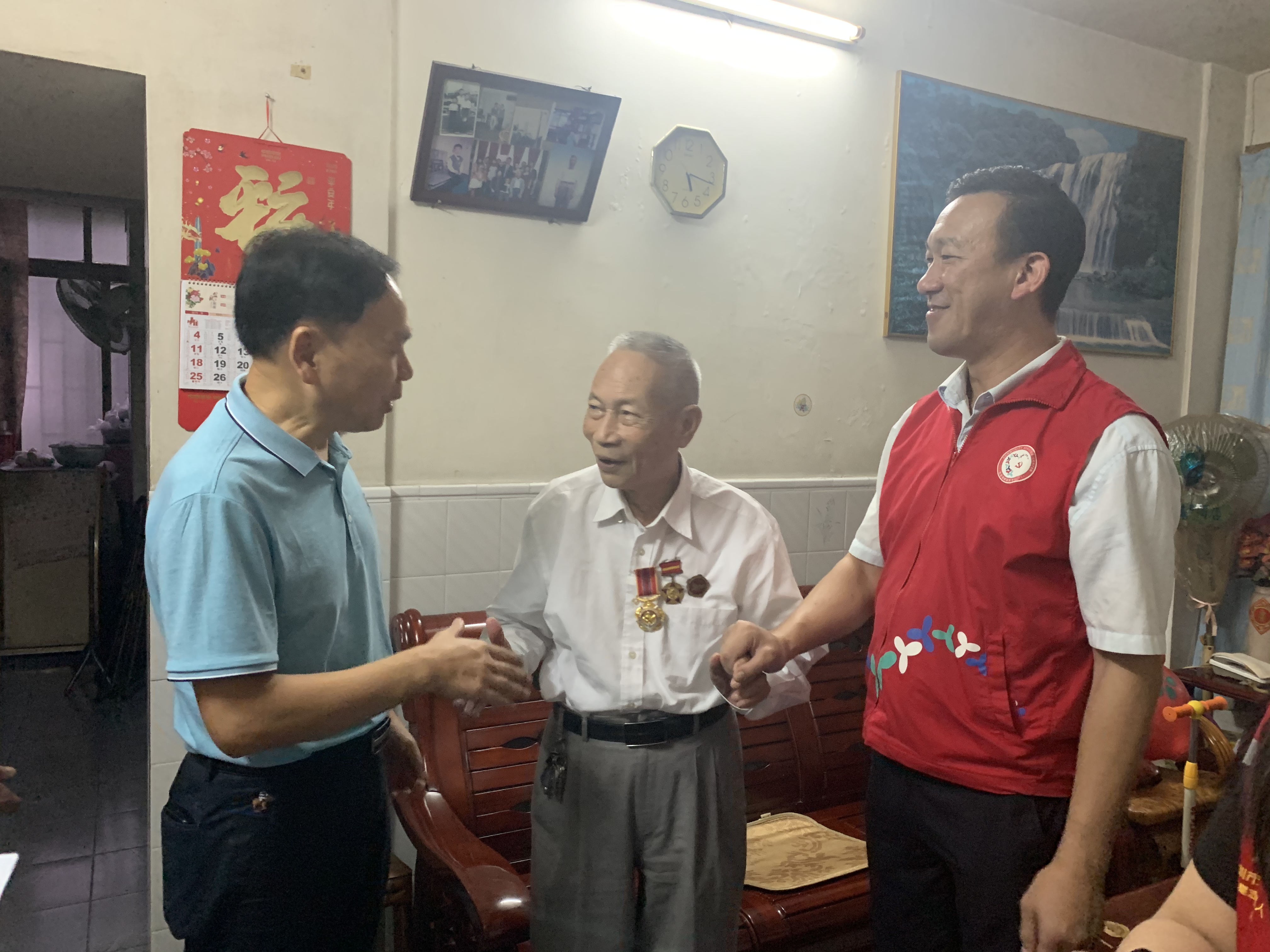 慰问组到潘耀珍老战士家中,为老战士佩戴了“中国人民志愿军抗美援朝出国作战70周年”纪念章,并赠送慰问金,感谢他为党的革命事业和国家建设作出的突出贡献。慰问组详细询问了老战士的身体、生活情况,聆听他们在抗美援朝作战那段峥嵘岁月时期的光荣事迹,肯定他们作出的突出贡献,鼓励他们保持积极乐观的心态,保重身体,安享晚年。