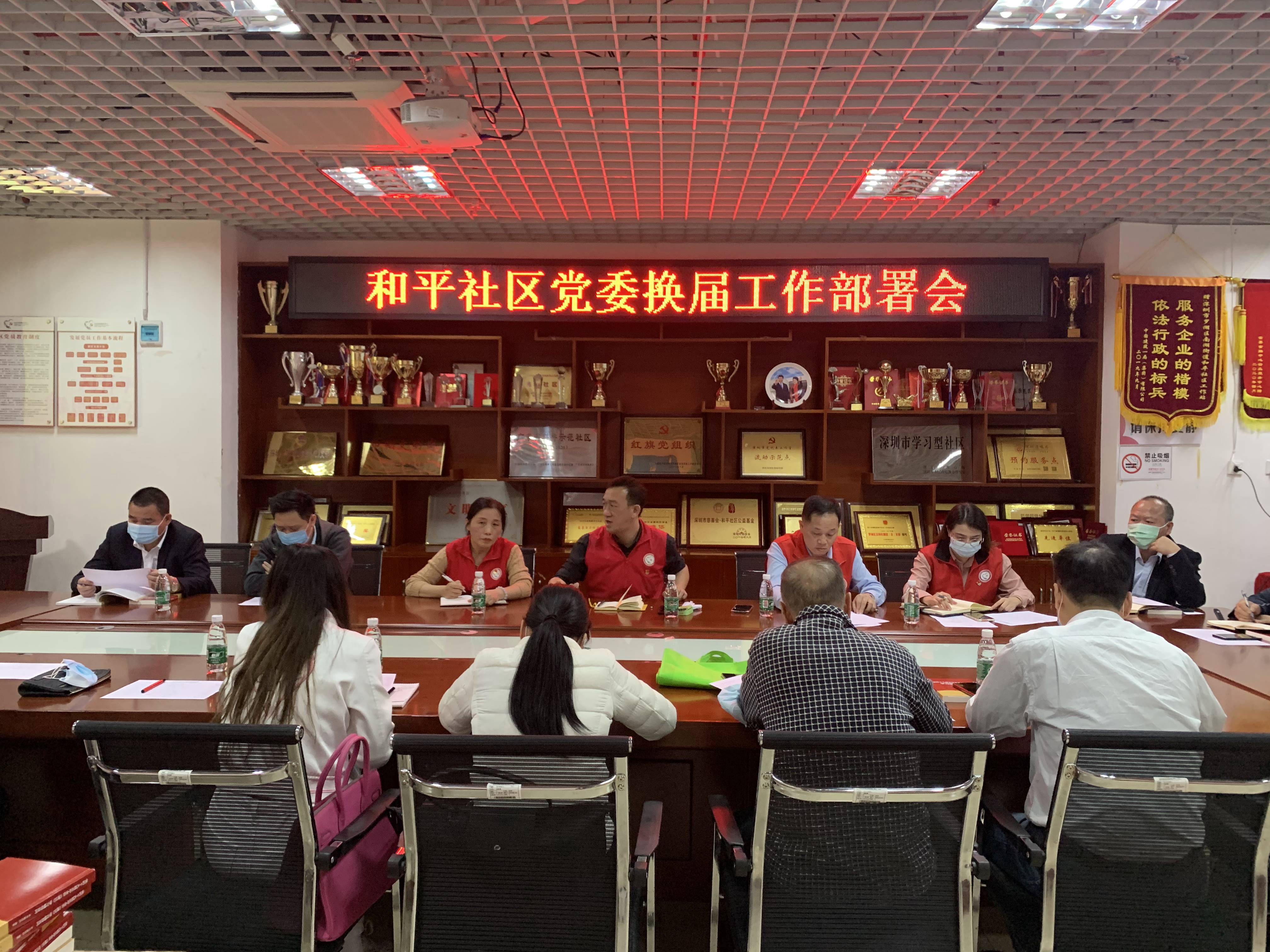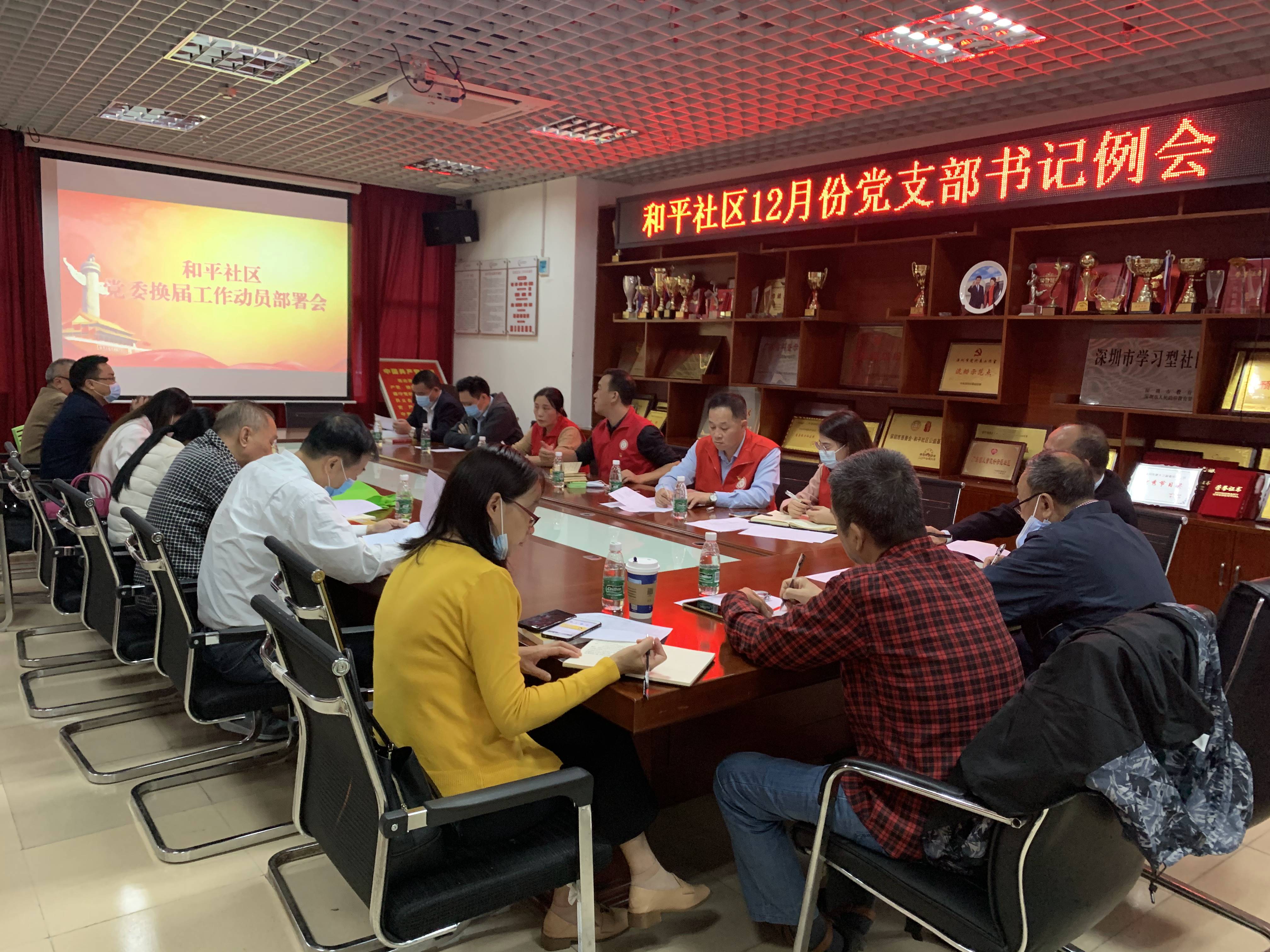为深入贯彻市、区关于做好社区两委换届工作部署会议精神,动员部署启动换届工作,统一思想认识、明确工作要求,确保换届工作高质量推进、高标准完成。12月2日下午,和平社区党委召开党委换届工作部署会议暨12月份党支部书记例会。和平社区党委书记姜德荣同志、党委专职副书记吴正军同志、党委副书记陈少斌同志,以及社区各党支部书记、支委代表等参加了会议。