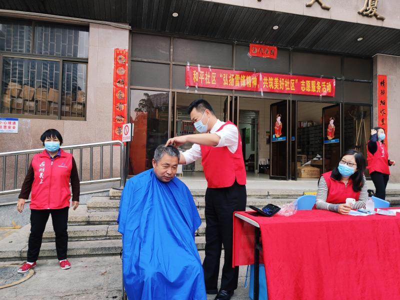 为庆祝第58个“学雷锋纪念日”,为进一步传承雷锋精神,大力弘扬“奉献、友爱、互助、进步”的志愿服务精神,传播志愿服务理念。3月5日下午3点,和平社区党委、居委会、服务中心联合海关离退办、和平社康中心、龙城物业在海关大院开展“弘扬雷锋精神,共筑美好社区”便民志愿服务活动。活动内容涵盖免费剪头发、安全知识宣传、测血压、测血糖、疾病健康知识咨询等,共发动社区党员、群众志愿者20人。