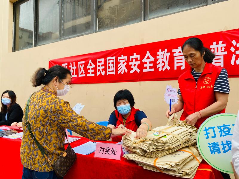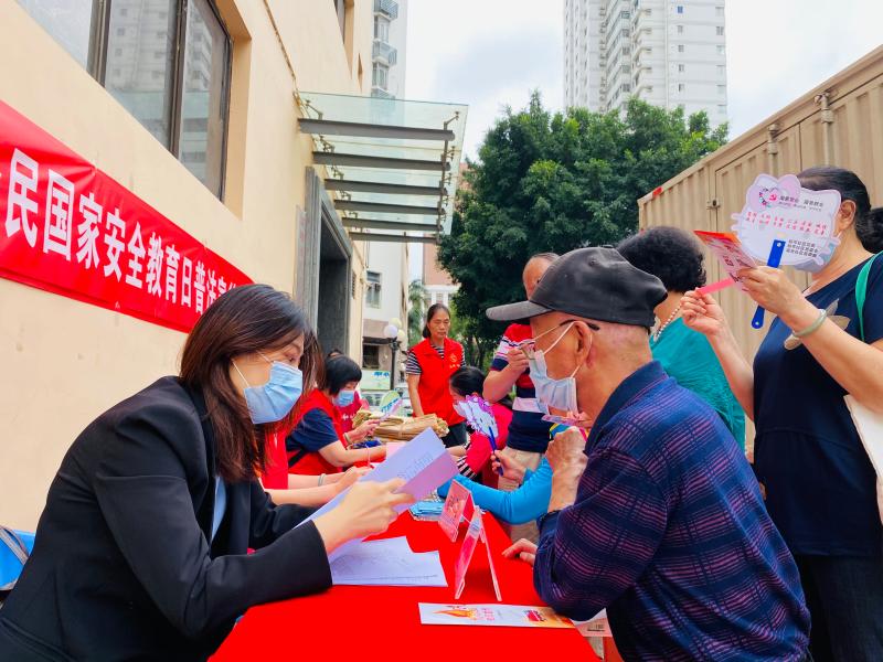活动现场特邀广东国申律师事务所律师到场为群众讲解法律知识,增强群众对国家安全意识。在活动现场居民积极参与有奖问答活动。
