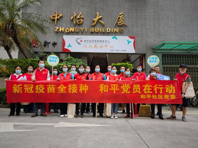 和平社区讯 为响应全面推进史上最大规模疫苗接种的号召,让更多的人加入疫苗接种大军,保障全民健康,共筑免疫长城,清明假期前后几天,和平社区党委充分发挥党建引领作用,通过各党支部的号召,组建起了一支新冠疫苗接种宣传党员志愿服务队,连续开展“新冠疫苗全接种和平党员在行动”疫苗接种宣传活动,同时和平社区老年人协会以及和平社区邻里互助协会的志愿者也参与进来宣传。