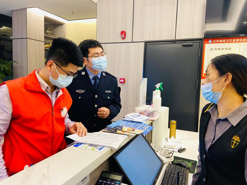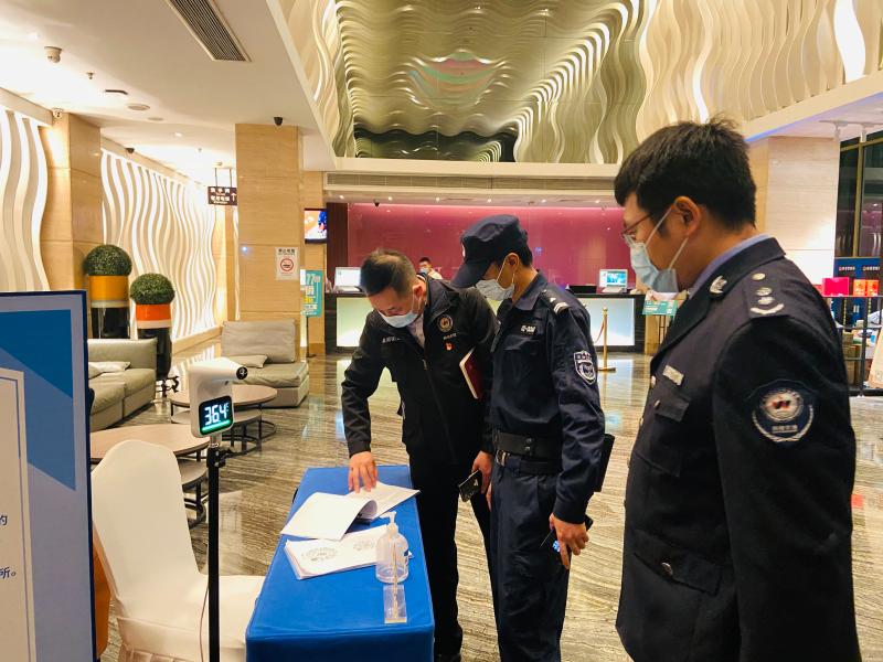 和平社区讯 12月23日晚,和平社区党委书记,工作站站长江晓锋带队,联合社区警务室对辖区小型酒店、宾馆疫情防控工作进行检查,重点检查前台工作人员对西安等疫情风险地区,目前防疫措施了解及落实情况,同时对酒店入住人员进行随机抽查,现场核验人员健康码、行程码、疫苗接种情况。共随机核查6户6人,体温与行程码均正常,排查1名西安籍人员,体温正常,14天内均未离深。社区同步利用微信群,走访酒店宾馆强调对疫情防控风险地区,特别是近期西安等风险地区返深人员管控措施,要求宾馆酒店对入住人员严格查验,进一步守好口,把好关。(来源 和平社区 通讯员 郑晓琪 编辑 陈茜)
